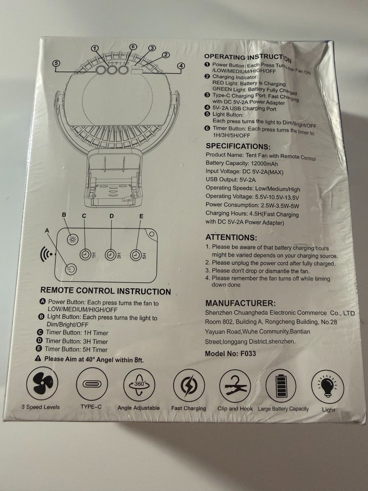 Product Dimensions: 4"D x 5.5"W x 8.3"H Main Power Connector Type: NEMA 5-15 Style: Modern Room Type: Kitchen Recommended Uses For Product: Air Circulation, Cooling Included Components: Remote Special Feature: Lightweight Features: Rechargeable Finish Type: Matte or Glossy Collection Name: Desk Material Plastic: Number of Speeds 3 Reusability: Rechargeable Mounting Type Window Mount,Freestanding: Controller Type Remote Control Color: Blue Brand: Does not apply gtin13: 744759971197 Indoor/Outdoor Usage: Outdoor Number of Blades: 4 Operating Sound Rating: 23 dB Type: Does not apply Item model number: Clip on Fan 65 Hours Wattage: 2.2 watts Blade Material: Plastic Voltage: 5 Volts Material: Plastic Power Source: Corded Electric,Battery Powered, Battery, Electric, Corded Room: Kitchen Suitable For: Outdoor Control Method: Remote Year Manufactured: 2021 Item Depth: 4 in Batteries: 1 Lithium Polymer batteries required. Item Diameter: 5 in UPC: 744759971197 Speed: 5500 RPM Mounting: Clip-On Timer Control: 12 hrs Is Cordless?: Yes Number of Speeds: 3 Seller Notes: “original packaging, slight dent to package. has not been opened, does not seem to be damaged” Connector Type: USB Type C Number of Power Levels: 3 Item Weight: 14.9 ounces