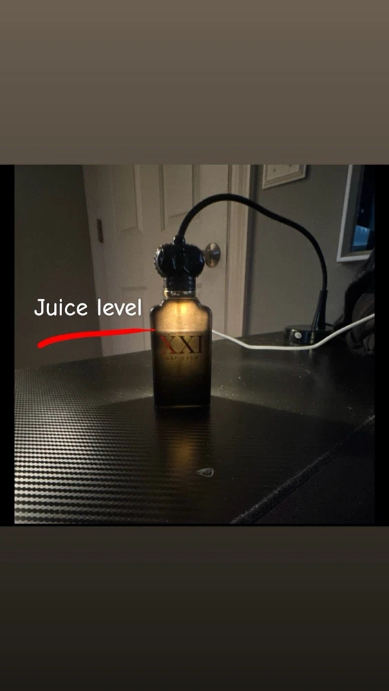 Around 75% full as seen in photos . 100% authentic. Used but no virtually no visible damage and bottle has never been exposed to the sun .