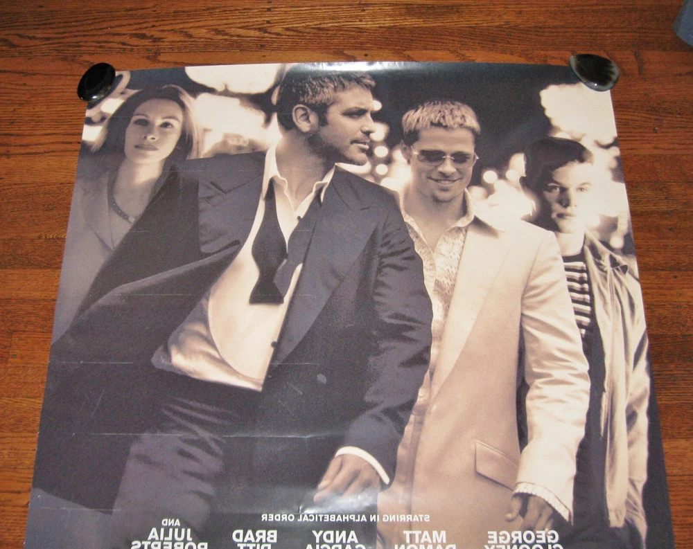 Clooney Pitt Ocean's Eleven 2001 Vintage Double-Sided Movie Poster