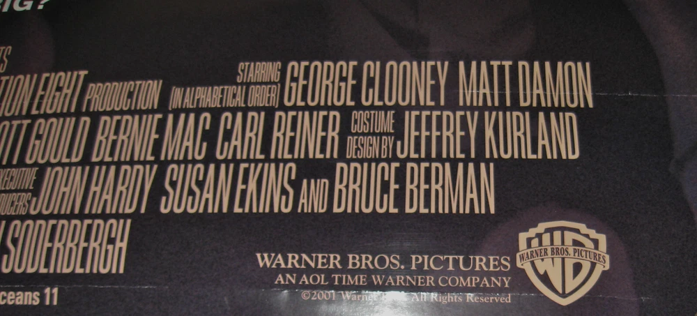 Country/Region of Manufacture: United States Original/Reproduction: Original Personalize: No Seller Notes: “Good vintage condition” Year: 2000-Now Movie: Oceans Eleven Modified Item: No Industry: Movies Size: 40 x 27 Object Type: Poster