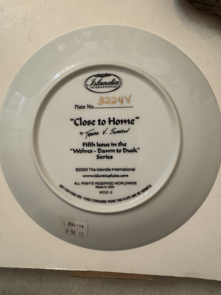 You are viewing a “Close to Home” Plate and Stand. Fifth Issue In The Wolves-Dawn To Dusk Series Plate Number 3224V & comes with COA. High bidder pays S/H fee of $12.00