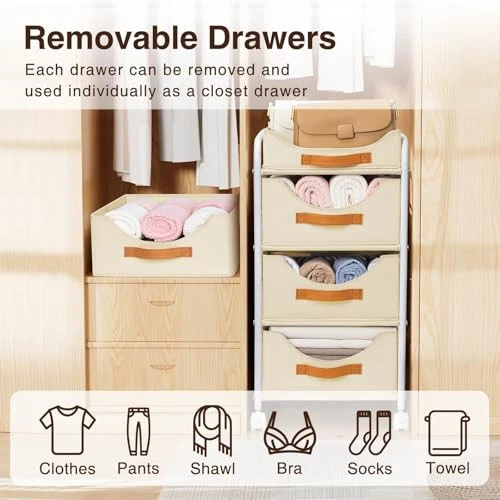 Return Policy Fast Delivery Trusted seller Closet Organizers and Storage 4 Tier - Fabric Clothes Drawer Storage Bins, Stackable Rolling Storage Cart with Wheel, Small Dresser for Closet Bedroom Nursery Office Product Description [Versatile Design for Multiple Uses] This 4-tier fabric drawers is your ultimate storage solution! Whether used inside a closet to organize clothes and towels or as a shoe rack in your living room, it fits seamlessly into any space. The top drawers for closet is perfect for bags and small items, keeping your space tidy and stylish [Easy to Move and Stable to Use] The storage drawers with wheels design allows for effortless movement between rooms, while the lockable wheels ensure stability when needed. The curved openings let you quickly identify what’s inside without opening the drawers, and the built-in handles make clothes organizer easy access retrieval a breeze, adding convenience to your daily routine [Durable and Stylish Structure] Built with a reinforced iron frame and premium-quality clothes organizer, this closet drawers durability with a sleek appearance. It’s sturdy enough to hold all your essentials while adding a modern touch to your bedroom, living room, or closet [Modular Storage, Flexible Use] Each closet storage drawer can be removed and used separately, giving you more options for organization. Perfect for storing socks, underwear, or towels in a closet storage organizer, or even toys and documents elsew in your home. Plus, the easy-to-follow assembly instructions (shown in the images) make setup quick and stress-free [Compact Size, Perfect for Small Spaces] Designed to maximize vertical space, this 4 tier stackable storage bins cart measures 13.8 inches long, 15.75 inches wide, and 26.8 inches tall—perfect for small spaces and tight corners. Whether used as a closet organizer, a shoe rack, or a general storage unit, it fits effortlessly. Enjoy a 60-day money-back and prompt customer support for a worry-free purchase Shipping Returns Payment Shipping Shipping is FREE to all addresses other than APO/PO boxes in the lower 48 states. All our stock ships from US-based warehouses. Shipped via USPS or UPS (depending on location and package weight) Unless stated otherwise, all orders will ship within 24-72 hours of your payment being processed. Check our feedback to see the great reviews of FAST shipping we offer. Returns Seller does not accept returns Payment We currently accept payment via eBay managed payments only. Once payment is cleared, we will dispatch your shipment within 1-3 business days. Please refer to the "Shipping" tab for more information regarding shipping speed to your destination.