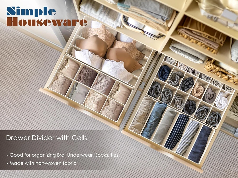 Menu Other Items Feedbacks About Us Contact Us Add To Favorites Closet Underwear Organizer Drawer Divider 4 Set, Beige Good for organizing your lingerie, socks, underwear when you finish laundry and easy to access them while you need it. Made with non-woven fabric The item includes 4 bins: 6 cell(scarves, ties), 8 cell(underwear, briefs, ties), 7 cell(bra), 24 cell(socks) Dimension:12" X 6" X 3.5"H for 6 cell and 8 cell bins. Dimension:12" X 12" X 3.5"H for 7 cell and 24 cell bins Product Description Good for organizing your lingerie, socks, underwear when you finish laundry and easy to access them while you need it. Made with non-woven fabric. Drawer Walking Closet Standard Closet Shelves Rack Great Organizer for Drawer and Closet Simple Houseware Closet Organizer Series Add to Cart Add to Cart Add to Cart Add to Cart Add to Cart Add to Cart Customer Reviews 4.5 out of 5 stars 61,134 4.7 out of 5 stars 7,517 4.5 out of 5 stars 1,747 4.6 out of 5 stars 11,137 4.6 out of 5 stars 11,137 4.5 out of 5 stars 591 Price $13.87 $ 13 . 87 $14.97 $ 14 . 97 $9.97 $ 9 . 97 $9.97 $ 9 . 97 $14.97 $ 14 . 97 $23.47 $ 23 . 47 Divider ✔ ✘ ✘ ✔ ✔ ✘ Bins 4 6 4 2 3 12 Size 4 3 2 1 2 3 For Socks ✔ ✘ ✘ ✔ ✔ ✘ For Clothes ✘ ✔ ✔ ✘ ✘ ✔ Item Specification Item Shape Rectangular Unit Count 4 Count Number of Compartments 24 Number of Items 1 Color Beige Mounting Type surface mount Item Weight 358 Grams Item Dimensions D x W x H 6"D x 3.5"W x 12"H Material Non-woven Fabric Specific Uses For Product Socks,Underwear Item Weight 358 Grams Shape Rectangular Mounting Type surface mount Number of Compartments 24 Unit Count 4 Count Special Feature Portable Product Dimensions 6"D x 3.5"W x 12"H Finish Type Lacquered,Brushed,Powder Coated,Painted Features Portable Dimensions Shipping Returns Additional Info Product Dimensions: 3.5 "h x 6.0 "h x 12.0 "h. Weight: 358.0 grams Fast shipping is very important for us. Our standard shipping service is FREE. Your order will be shipped within 1-3 business days upon full payment received. Most items are delivered within 3-5 business days, however, please allow 3-10 business days. We are shipping only to USA. We only ship to the confirmed Paypal address. We reserve the right to cancel any order for any reason at any time. We are not responsible for undeliverable addresses. We offer a 30 day return policy from checkout winning date. Your satisfaction is guaranteed! If for any reason you are unhappy with your item, just return it within 30 days for a full refund, minus shipping cost. Please contact us prior to initiating a return so that we can issue you a refund authorization. Items defective upon receipt must be packaged in their retail packaging as if new and returned with a detailed description of the problem. Return shipping fees are not refundable. We reserve the right to decline any returns if the above guidelines are not followed. All of our items, unless otherwise stated, will only run on 120 volts. Please check to make sure your country complies with these specifications. If you have a problem or question regarding your transaction please contact us before leaving any type of feedback. We will work with you to resolve any problem you may have.