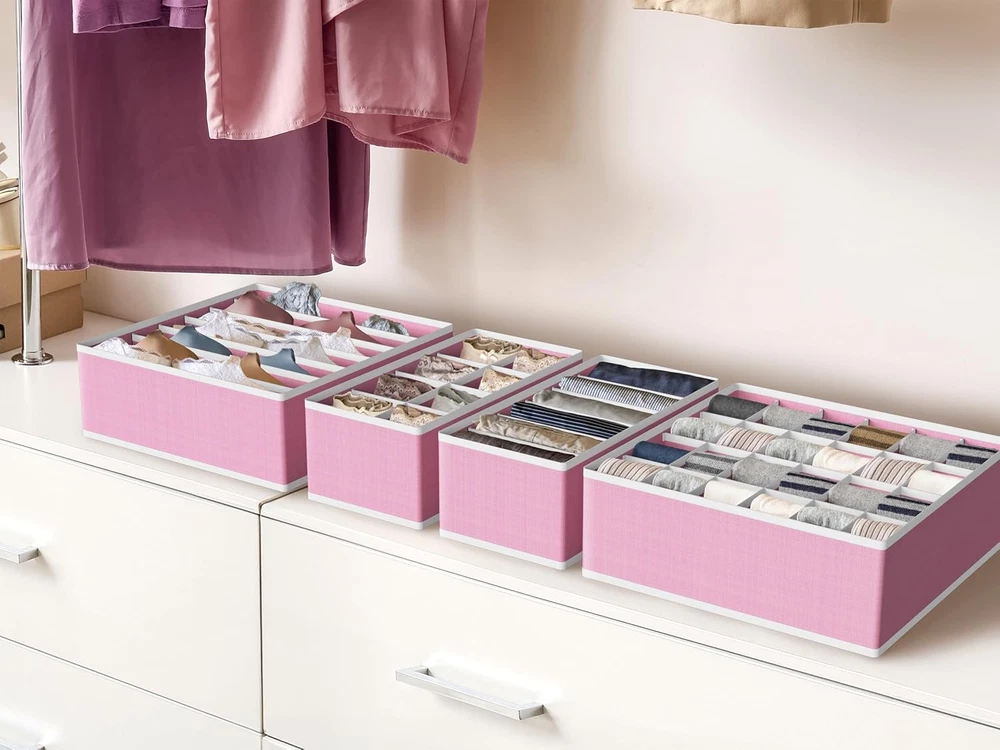 Menu Other Items Feedbacks About Us Contact Us Add To Favorites Closet Underwear Organizer Drawer Divider 4 Set, Pink Good for organizing your lingerie, socks, underwear when you finish laundry and easy to access them while you need it. Made with non-woven fabric The item includes 4 bins: 6 cell(scarves, ties), 8 cell(underwear, briefs, ties), 7 cell(bra), 24 cell(socks) Dimension:12" X 6" X 3.5"H for 6 cell and 8 cell bins Dimension:12" X 12" X 3.5"H for 7 cell and 24 cell bins Product Description Good for organizing your lingerie, socks, underwear when you finish laundry and easy to access them while you need it. Made with non-woven fabric. Drawer Walking Closet Standard Closet Shelves Rack Great Organizer for Drawer and Closet Simple Houseware Closet Organizer Series Add to Cart Add to Cart Add to Cart Add to Cart Add to Cart Add to Cart Customer Reviews 4.5 out of 5 stars 61,134 4.7 out of 5 stars 7,517 4.5 out of 5 stars 1,747 4.6 out of 5 stars 11,137 4.6 out of 5 stars 11,137 4.5 out of 5 stars 591 Price $13.87 $ 13 . 87 $14.97 $ 14 . 97 $9.97 $ 9 . 97 $9.97 $ 9 . 97 $14.97 $ 14 . 97 $23.47 $ 23 . 47 Divider ✔ ✘ ✘ ✔ ✔ ✘ Bins 4 6 4 2 3 12 Size 4 3 2 1 2 3 For Socks ✔ ✘ ✘ ✔ ✔ ✘ For Clothes ✘ ✔ ✔ ✘ ✘ ✔ Item Specification Item Shape Rectangular Unit Count 4 Count Number of Compartments 45 Number of Items 4 Mounting Type surface mount Color Pink Mounting Type surface mount Item Weight 0.35 Kilograms Material non woven fabric Maximum Weight Recommendation 6 Pounds Specific Uses For Product Socks,Underwear Item Weight 0.35 Kilograms Product Dimensions 6"D x 3.5"W x 12"H Shape Rectangular Number of Compartments 45 Unit Count 4 Count Special Feature Portable Item Dimensions D x W x H 6"D x 3.5"W x 12"H Finish Type Lacquered,Brushed,Powder Coated,Painted Features Portable Dimensions Shipping Returns Additional Info Product Dimensions: 3.5 "h x 6.0 "h x 12.0 "h. Weight: 0.35 kg Fast shipping is very important for us. Our standard shipping service is FREE. Your order will be shipped within 1-3 business days upon full payment received. Most items are delivered within 3-5 business days, however, please allow 3-10 business days. We are shipping only to USA. We only ship to the confirmed Paypal address. We reserve the right to cancel any order for any reason at any time. We are not responsible for undeliverable addresses. We offer a 30 day return policy from checkout winning date. Your satisfaction is guaranteed! If for any reason you are unhappy with your item, just return it within 30 days for a full refund, minus shipping cost. Please contact us prior to initiating a return so that we can issue you a refund authorization. Items defective upon receipt must be packaged in their retail packaging as if new and returned with a detailed description of the problem. Return shipping fees are not refundable. We reserve the right to decline any returns if the above guidelines are not followed. All of our items, unless otherwise stated, will only run on 120 volts. Please check to make sure your country complies with these specifications. If you have a problem or question regarding your transaction please contact us before leaving any type of feedback. We will work with you to resolve any problem you may have.