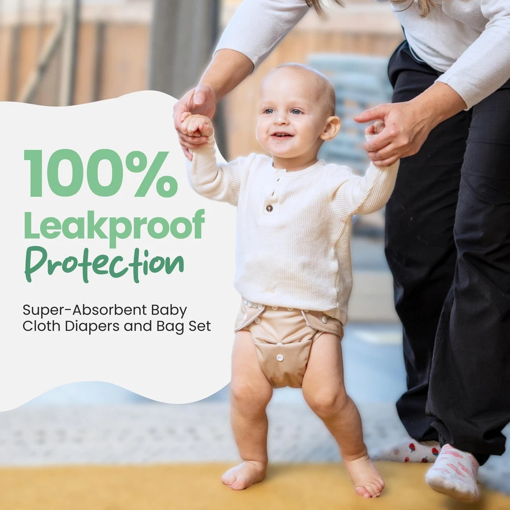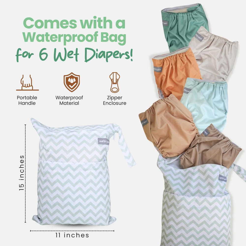Cloth Diapers 6 Pack with 6 Inserts & Wet Bag – Reusable, Adjustable Fit for ...
