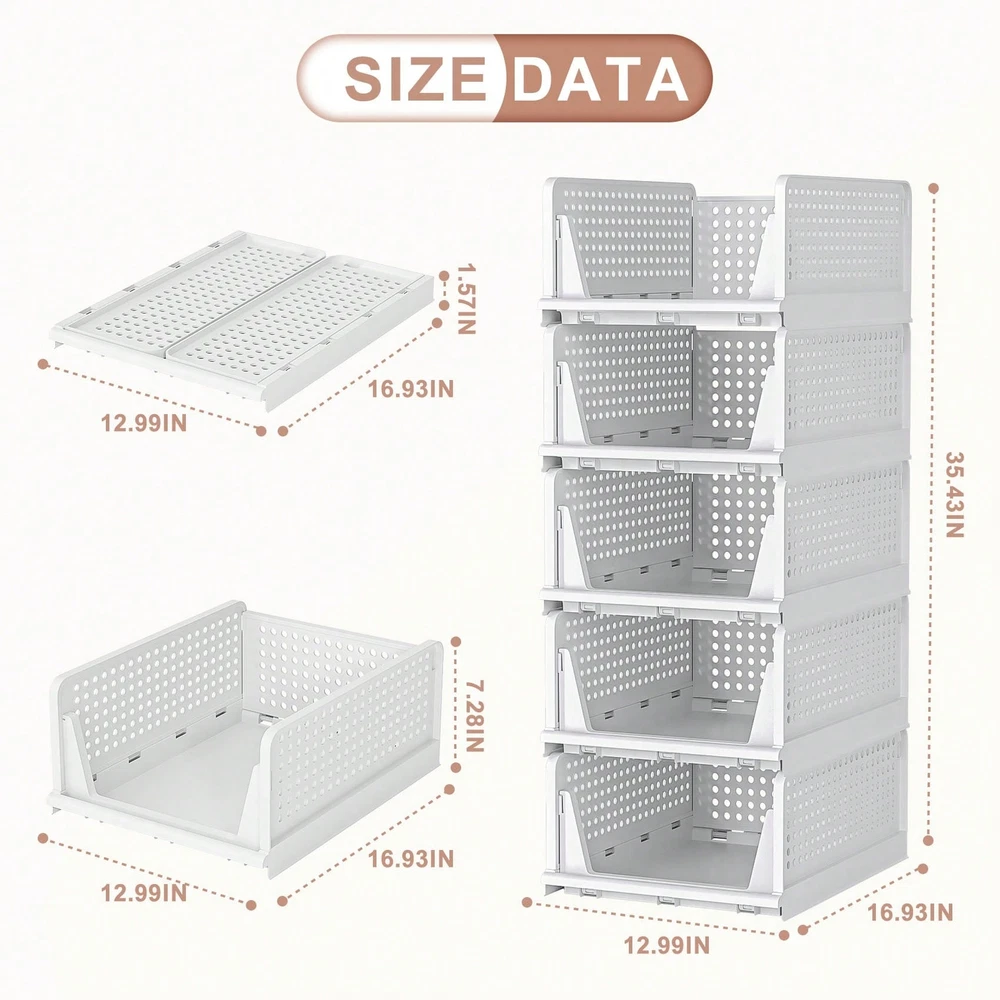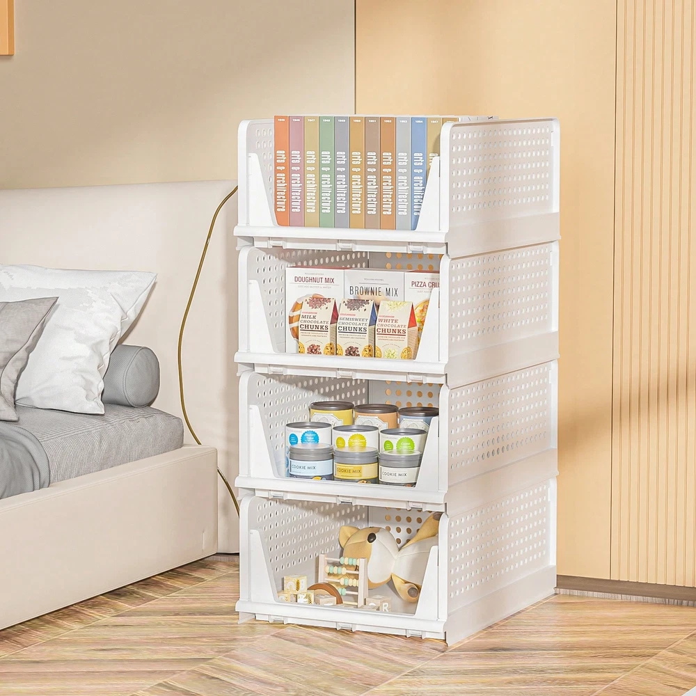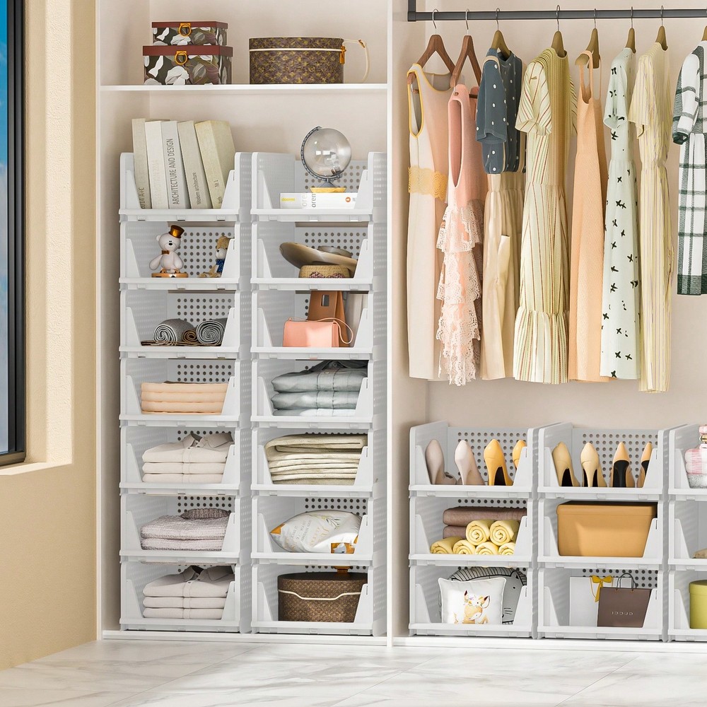 [Multi-function] Stackable storage box, suitable for storing T-shirts, towels, clothes, toys, snacks, books, documents and other items. Suitable for wardrobe, dormitory, bathroom, kitchen, living room, office. Each box measures 16.6 "L x 13.1" W x 7.3 "H. [Maximize storage space] The closet organizer is stackable, keeping the home vertical space organized. Freely stack and adjust the number of wardrobe drawers to best fit your wardrobe or storage space. The collapsible design of the locker allows it not to take up space when not in use, which also helps to save more space. [Slide design] The slide design at the bottom, even in the most internal, can also be convenient to pick items. Don't worry about messing up anything on it. This is a good solution, especially for stacking clothes for storage. [Durable] The wardrobe organization frame is made of high quality and strong PP plastic, durable, beautiful in shape and durable. The clothes organizer is easy to clean and requires only a simple wipe. [Please note] : Stackable baskets do not slide out completely like drawers. If you need to pull it out, lean it against the wall, holding the drawer in place with one hand and pulling out only the top of the unit with the other. Color: White Material: PP