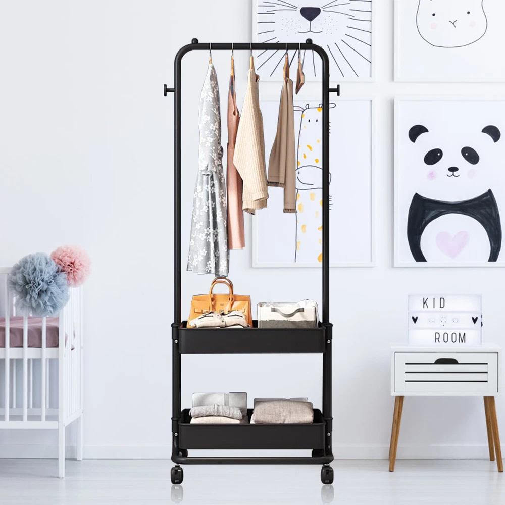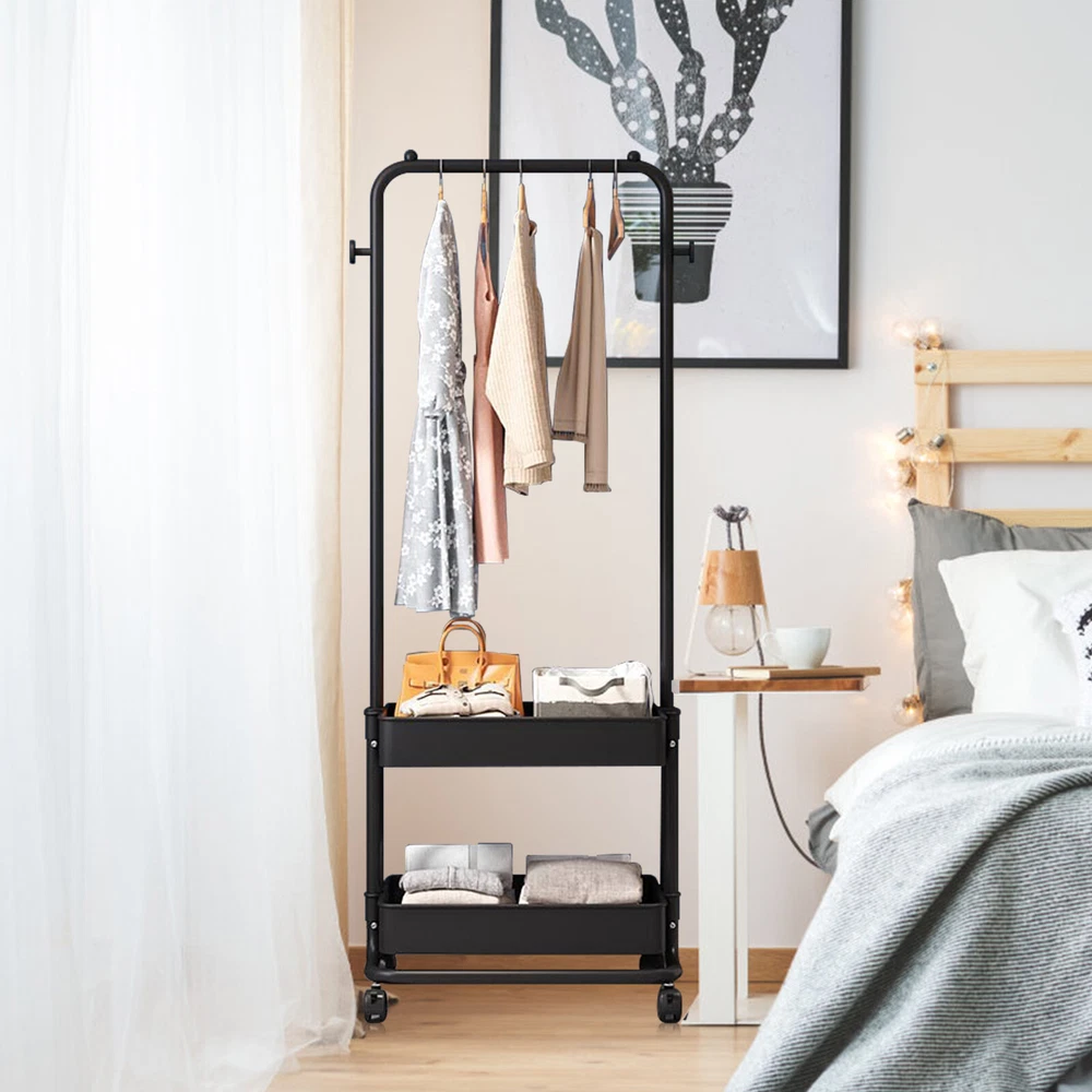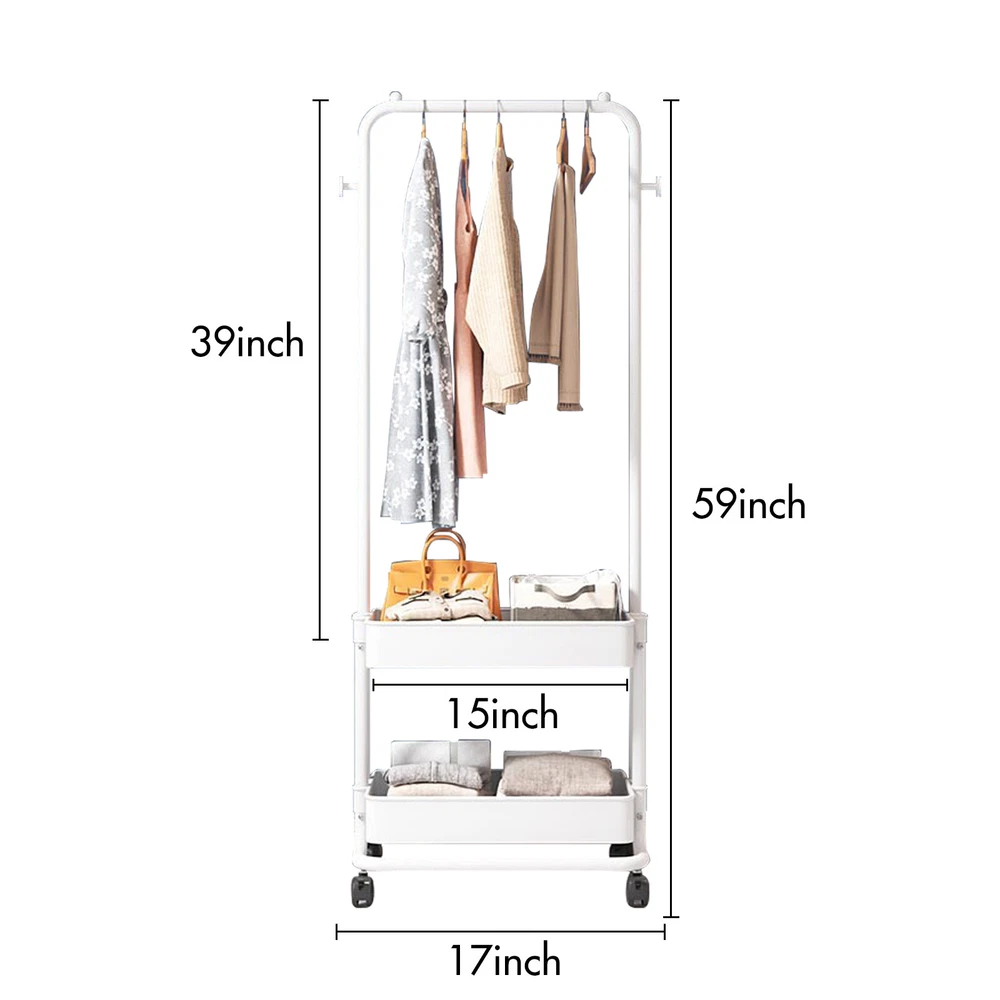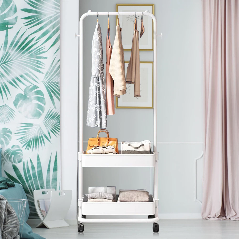 Clothing Rack with Tier Metal Basket Storage Cart Clothes Organizer Coat Rack US