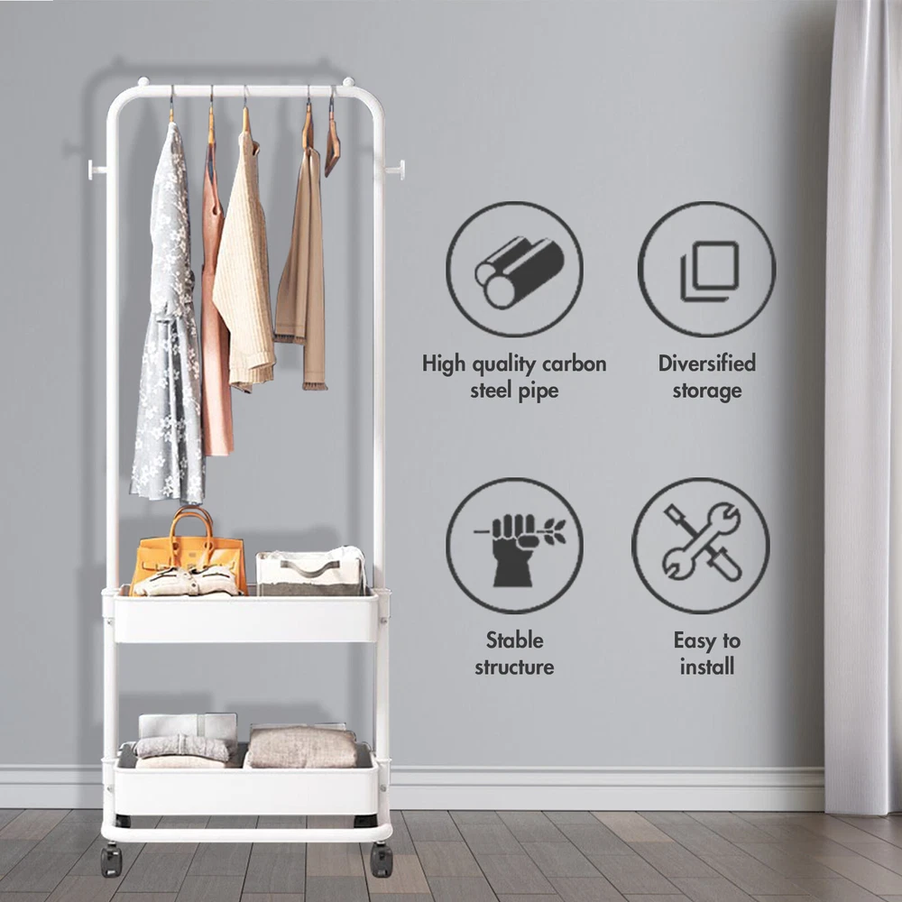 Clothing Rack with Tier Metal Basket Storage Cart Clothes Organizer Coat Rack US Type 1-3 Layers Description: This Clothes Rack is made of high-quality material, which is strong in bearing capacity, stable and durable, waterproof and rust-proof. The multi-layer design can help to save space. Equipped with movable pulleys, it is convenient to move the rack, which can be placed indoors and outdoors. This item is also easy to use and simple to install. Feature: -Equipped with removable pulleys, making it easy to move the rack. You can put it anywhere you want. -Made of high-quality material, sturdy composite pipe, which is waterproof, not easy to rust and durable. -With strong bearing capacity, it is eco-friendly, stable and has no odor. -Telescopic design, adjustable length and height, not limited by space, applicable to a variety of scenarios. Specification: Color: Black Material: Stainless steel pipe Type: 3 layers Size: As picture shows Note: 1. Please allow 1-3cm differs due to manual measurement. 2. The color may be a little different from that of real item due to different monitors. Package Content: 1*Coat Rack Type 1 - 2 Layers Product details This Clothes Rack is made of high-quality material, which is strong in bearing capacity, stable and durable, waterproof and rust-proof. The multi-layer design can help to save space. Equipped with movable wheels, it is convenient to move the rack, which can be placed indoors and outdoors. This item is also easy to use and simple to install. ◆More Storage Clothing racks have 2 rods and 2-tier shelf, one rod is taller and great for dresses and pants, the other one is shorter and perfect for tops and skirts. The bottom shelves are great for storing shoes and boxes. ◆Move or Stay 360°rotation wheels make it easier to move this rolling clothes rack from indoor to outdoor, easy to move around anywhere you like. 2 wheels come with a brake to lock it in place when stability is needed. ◆Sturdy and Durable Clothing racks on wheels made of premium steel tubes, ensuring excellent strength and stability, absolutely sturdy and easily supporting a load of clothing on hangers along with stacks of blankets or towels. ◆Rescued from messy clothes 3 in 1 double rod racks, solve the trouble of drying and storing, ideal for extra portable storage or rooms without closets in living room, bedroom, balcony, laundry room. Telescopic design, adjustable length and height, not limited by space, applicable to a variety of occasions. ◆Specification: Color: Black Material: Stainless steel pipe Type: 2 layers ◆Package Content: 1*Clothing Rack Type 2 - Black/White Description: 1. Made of high quality thicken metal tube, ABS and PP plastic, which is lightweight, sturdy and durable 2. Strong storage ability 3. Hang hats, scarves and clothes onto both the ends and central section of the bars 4. Two bottom shelves to hold shoes, storage boxes or other sundries 5. Suitable for bedroom, entryway, hallway, living room, balcony, etc 6. High quality and fine workmanship 7. Organize your house well Item Specifics: Type:Coat Rack Panel Color:Black/White Item Height:160cm/63inch Dimensions: (42.51 x 17.72 x 59.01)" / (108 x 45 x 150)cm (L x W x H) Material:Stainless Steel, Plastic Mounting:Free Standing Features: -Swivel wheels that can move hangers -Stable triangle design -Two layers of waterproof non-woven fabric can be used to store clothes, doll,bags, etc. Package Included: 1*Coat Wheel Rack Note: 1.Please allow 1-2cm error due to manual measurement. Please make sure you do not mind before you bid. Type 3 - Black/White Description: This practical and fashionable coat rack, not only can be used to hang clothes, but also can be used for large capacity storage. 2 in 1, saving space. It is made of high-quality material, which is strong in bearing capacity, stable and durable. Equipped with movable pulleys, it is convenient to move the rack, which can be placed indoors and outdoors. This item is also easy to use and simple to install. Feature: -Multifunctional: This 2-in-1 garment rack can be used not only as coat rack, but also as laundry rack or storage cart. The rack makes it easy to store clothes and small items. There is a height from the basket to the hanger rod, so you can hang long pieces of clothing such as coats and dresses. It is perfect for small spaces, such as dorm, indoor hallway, living room, bedroom, dressing room and laundry room, for hanging clothes. -Sturdy & Large Capacity: This portable coat rack is made of highly-quality carbon steel pipe, which is strong in bearing capacity, stable and durable. The 2-tier baskets create extra storage space for shoes, bags, boxes and folded clothes. -Wonderful Detailing: Adopting the design of a top hanging rail with plugs on each side that prevents clothes from falling out. Equipped with 4 wheels, 2 of which are equipped with brakes for stable parking even on slopes. -Easy to Assemble and Clean: The coat rack can be quickly assembled according to the instruction and the parts provided. Simply wipe with a cloth to clean the surface of the rack. Specification: Material: High-quality carbon steel pipe Unfolded size: 150*30*43cm Tube diameter: 18mm Weight: 2.4kg Color: White/Black Assembly Required: Yes Mounting Type: Free standing Package Contents: 1*Garment Rack 1*Manual Note: 1. Please allow 1-3cm differs due to manual measurement. 2. The picture may be a little different from that of real item due to the different display and different light. We can only accept Paypal payment only. You can send payment to our paypal account by many payment methods(Credit or debit card through PayPal). 1. Items are US stock. 2. Item will be shipped out within 1- 2 Working days upon your payment completed. 3.Please do not hesitate to contact us if you have any questions about our products. We will be responsible for any damages or losses incurred in the shipping process. 1.If there are any problems with our products,Please feel free to co