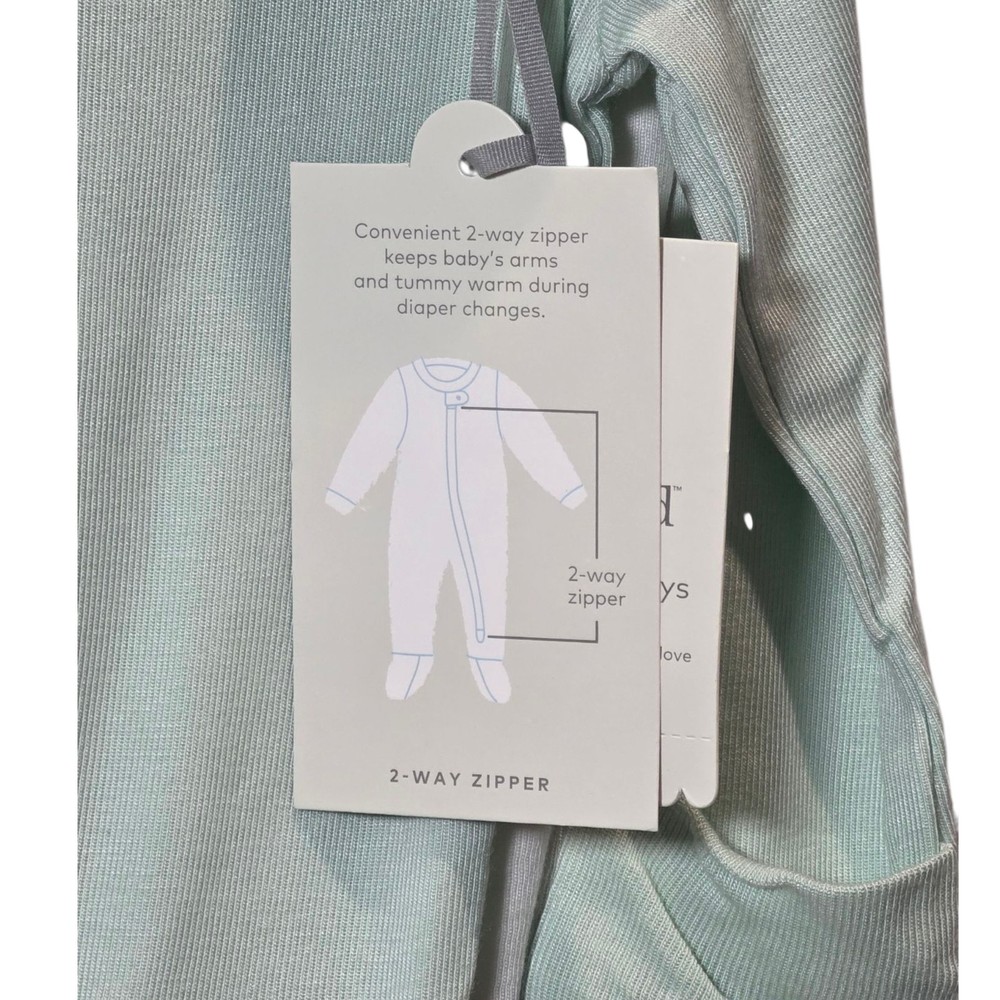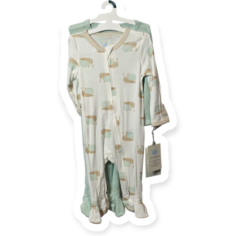 Fit & style •Size: 0-3M •Color: Snails & Mint Green •Baby 2pk sleep n' plays •Includes solid color and printed pattern •Long sleeves and footed ends •Soft and stretchy fabric •Round neckline •Snap tabs •Front full-length zipper closure, Two- Way Zipper •Standard 100 by OEKO-TEX certified
