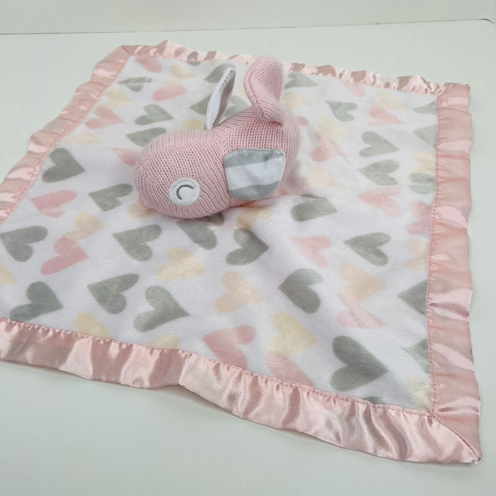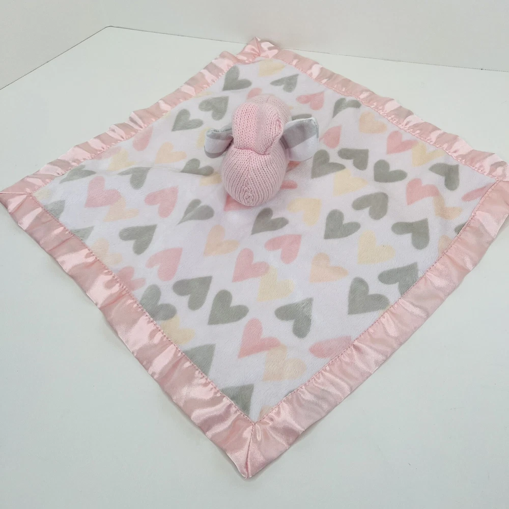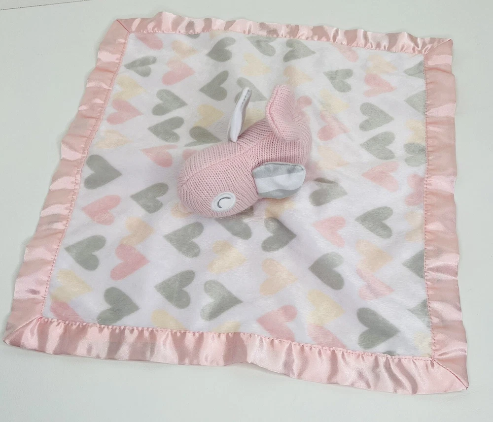 Cloud Island Knit Baby Bird Pink Gray Hearts Security Blanket Lovey Satin Trim