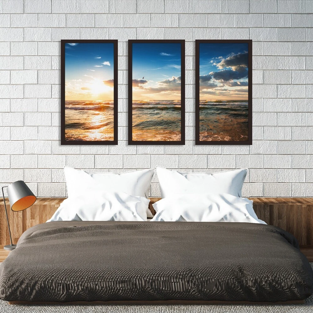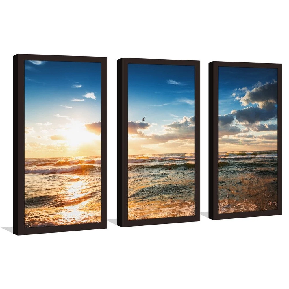 This Wall Art Set of 3 is printed on Plexiglass using a high-speed flatbed printer.Producing excellent print quality with a 6-color plus white UV-curable inkjet system.The breathtaking effect of fine art printed directly onto Acrylic is unique and exquisite.Its reflective vibrant colors creates a contemporary style of art that will bring depth to your walls.The artwork has been reprinted from the Artists' original piece with written permission.Made in North America & Arrives ready-to-hang.Frame: 1" EspressoThis framed art print is being custom built for you. Please allow 10 business days for the product to leave our warehouse. Shape: RectangleOrientation: HorizontalSubject: Photography, Sea & ShoreStyle: Fine Art Giclee, Contemporary Free Shipping Over $49.99* Details "Cloudscape over the Sea" Framed Plexiglass Wall Art Set of 3 Product Description: This Wall Art Set of 3 is printed on Plexiglass using a high-speed flatbed printer.Producing excellent print quality with a 6-color plus white UV-curable inkjet system.The breathtaking effect of fine art printed directly onto Acrylic is unique and exquisite.Its reflective vibrant colors creates a contemporary style of art that will bring depth to your walls.The artwork has been reprinted from the Artists' original piece with written permission.Made in North America & Arrives ready-to-hang.Frame1" EspressoThis framed art print is being custom built for you. Please allow 10 business days for the product to leave our warehouse. ShapeRectangle OrientationHorizontal SubjectPhotography, Sea & Shore StyleFine Art Giclee, Contemporary