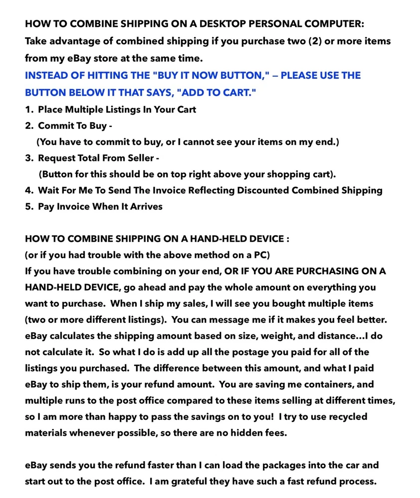 1. Great quality item at a good price in great condition. Favorite needles that are replacing ones I've shared with others. Seller is thorough, conscientious, with outstanding communication -- responds amiably, kindly, and quickly, with useful details,. I deeply appreciate the combined shipping -- just click the button in cart to ask for combined shipping invoice. Items were well-packed, shipping fast, tracking good. Who could ask for anything more? Great seller. Thank you!