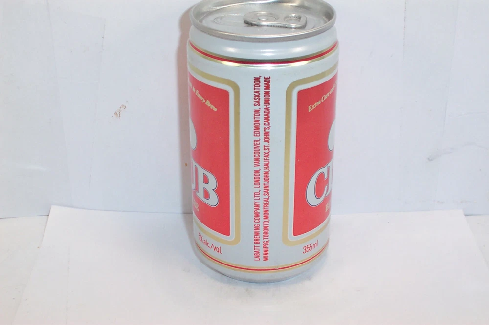 The item offered in this auction is a 355ML (12oz.) aluminum stay tab top beer can: Club Beer Biere by Labatt Brewing Co. Ltd., London,Vancouver, Edmonton, Saskatoon, Winnipeg, Toronto, Montreal, St. John, Halifax, St. John's, Canada. This Club can is in nice indoor condition. It may have small imperfections typically found on aluminum beer cans. A close examination of the pictures will give you the best analysis of condition. This beer can is empty and contains no liquid. I will gladly combine beer can auctions to save on shipping costs. BCCA # 1133