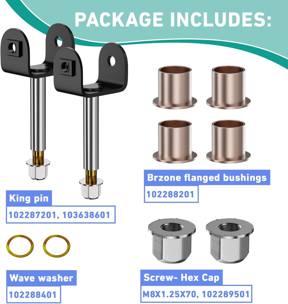 Store New Arrivals Add to Favorite View Feedback Contact Golf Cart Front End King Pin Repair Kit for Club Car Precedent 2004-Up Gas and Electric Models, Replaces OEM 102287201 103638601 103638801 Description Color 2 Pcs King Pin Bushing Kit Package Weight 1.1 Kilograms Item Package Dimensions L x W x H 7.05 x 4.72 x 3.74 inches Size Small COMPATOBLE MODELS: Club car front end king pin repair kit fits club car precedent 2004-up gas and electric golf carts Well QUALITY: OEM replacements, well made and perfectly fit to greatly improve the performance of your cart's front end CONVENIENT : Directly replaces the worn out old king pins. This set of repair kit will do your whole cart PACKAGE INCLUDES: 2 x King pin assemblies, 102287201, 103638601; 4 x Brzone flanged bushings, 102288201; 2 x King pin wave washer, 102288401 DRIVE-UP: Easy Installation. If you have any problems, we do our best to help you solve it. Also, we will strive to provide you with a more variety of golf cart accessories Product Description Basic Information of Drive-up Front End King Pin Repair Kit Fit on Golf Cart Club Car Precedent g&e golf cart Year 2004-up Replaces OEM Part 102287201, 103638601, 102288201, 102288401 Package Contains 2 x king pin assemblies, 4 x brzone flanged bushings, 2 x king pin wave washers, 2 x hex cap screws Golf Cart Front End King Pin Repair Kit Well QUALITY CONVENIENT Directly replaces the worn out old king pins. This set of repair kit will do your whole cart. ABOUT US We offer the best prices around on high quality products. Our E-store includes media such as books, movies, music and games while offering electronics, toys, sporting apparel, clothing, tools, general home, garden items and more. SHIPPING We are always working hard to ensure your package arrives as soon as possible. Please understand that some factors like weather, high postal traffic, and the performance of shipping companies are outside of our control. We offer free shipping to the lower 48 states and ship within 2 business days of payment, usually sooner. We do not accept P.O. Boxes. Please provide a physical address. For shipping outside of the continental USA, we only use eBay's Global Shipping Program.The item is shipped to KY and then sent to the rest of the world. International customers are responsible for all duties and taxes. Continue to check out in order to calculate costs for shipping the item to your country. Messages regarding eBay's Global Shipping Program MUST be directed at eBay EXCLUSIVELY. RETURNS We offer a 30-Day Return Policy on items which you are not completely satisfied with. You have the option for a full-refund or an exchange of the item. No returns are available on items shipped outside of the USA. PAYMENT We accept PayPal. CONTACT US This page content is yet to come Please ad us to your favorite seller and visit again later Thank You CUSTOMER SATISFACTION We try our very best to make sure every customer is completely satisfied. If there's a problem, message us! We're happy to help. WE ACCEPT Copyright © 2021 AutoDS. | All Rights Reserved