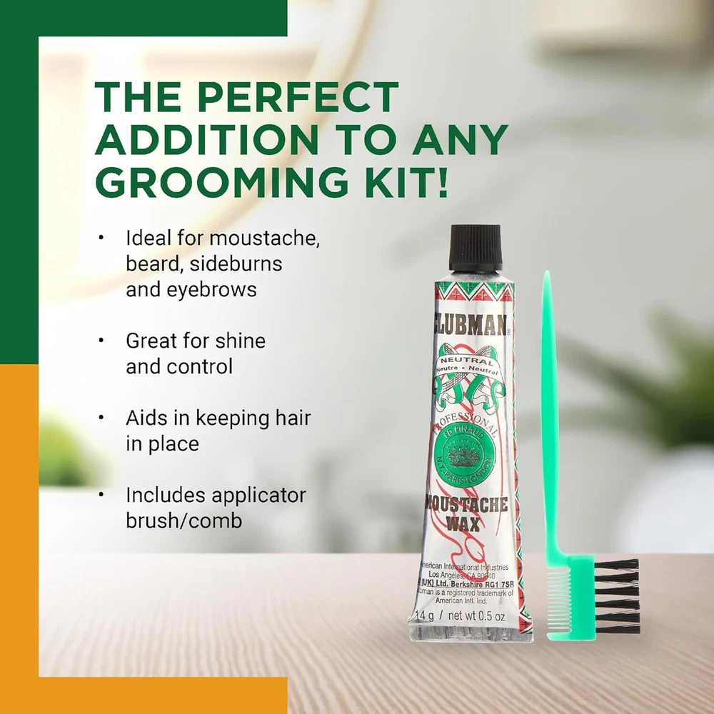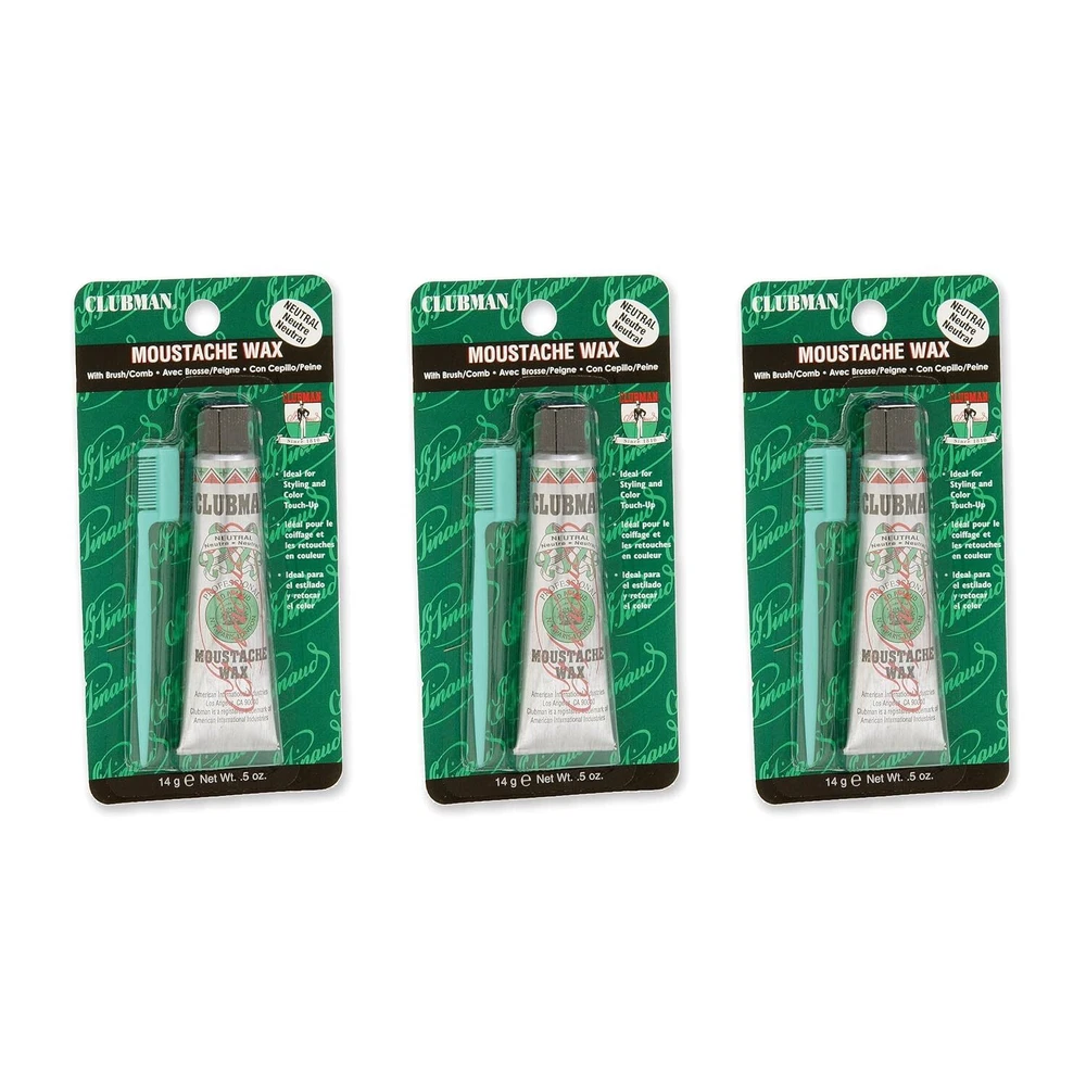 Clubman Pinaud Moustache Wax with Comb Applicator, Neutral, 0.5 Oz (Pack of 3)