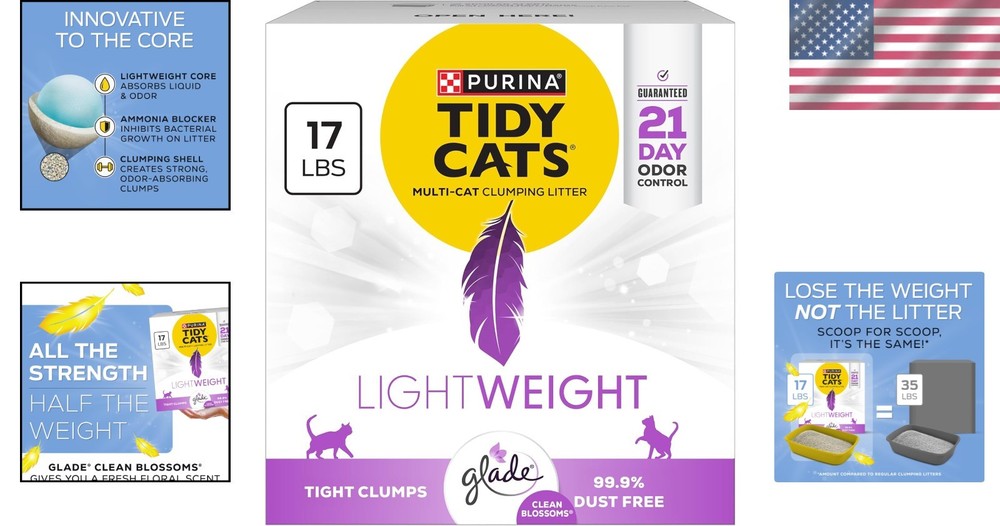 Clumping Cat Litter - Purina Tidy Cats with Glade Blossoms - Low Dust, 17 lb ‹ › ‹ › ‹ › ‹ › ‹ › ‹ › ‹ › ‹ › ‹ › ‹ › ‹ › ‹ › Clumping Cat Litter -Purina with Glade Blossoms -Low Dust, 17 lb Features: 21-Day Odor Control: Effectively prevents ammonia odor, ensuring a fresh environment when used as directed. Lighter Formula: 50% lighter than the leading clumping litter without compromising quality. Powerful Absorbency: Forms light, tight, strong clumps for effortless scooping. Low Dust: 99.9% dust-free, minimizing tracking and mess in your home. Fresh Scent: Scented with Glade Blossoms for a pleasant floral fragrance, ideal for multi-cat households. Benefits: Ensures a clean and odor-free space for your beloved feline friends. Half the weight makes it easy to carry and handle. Strong clumping abilities mean less hassle when it comes to maintaining your litter box. Reduces dust and tracking for a cleaner home environment. Suitable for multiple cat households, making every litter box a welcoming zone. Why choose our Clumping Cat Litter? Choosing the right litter is crucial for both you and your cats. Our Clumping Cat Litter from Purina with Glade Blossoms combines superior odor control with a delightful scent, ensuring your home stays fresh and pleasant. Its lightweight formula makes handling and cleaning a breeze, while the low dust content helps keep your space tidy and your cats comfortable. Treat your beloved pets to a litter solution that respects their needs — and yours. Transform your litter box experience with Purina LightWeight Litter with Glade Clean Blossoms – ensuring every scoop is a breath of fresh air! Shipping Free & Fast Shipping - We offer free shipping to most of the USA with a normal delivery time of 3-7 days. However, due to the current situation, additional delivery time (up to 3 weeks) may be required for some items. Alternative Carriers - We may use alternative carriers (e.g. USPS, FedEx, UPS, etc.) to ensure your package arrives safely and on time. Due to the use of multiple carriers, we are unable to provide a tracking number automatically. Handling Time - Orders are processed and shipped within 1-2 business days of receiving cleared payment. Shipping Restrictions - Shipping to Alaska, Hawaii, Puerto Rico, Guam, and other US territories may incur shipping charges or delivery restrictions. Please contact us before ordering, or your order can be refunded/cancelled. State Restrictions - There may be restrictions based on your state of purchase. For example, certain items may not be shipped to California due to state regulations. Contact for Tracking Updates - If you require tracking updates or have any concerns about the delivery of your order, please feel free to contact us, and we will be happy to assist you. Return 30-Day Hassle-Free Returns - We want you to be completely satisfied with your purchase. If you are not, you can return the item within 30 days of receiving it for a full refund or exchange. Easy Return Process - To start a return, simply contact us and we will provide you with a prepaid return shipping label and detailed instructions. Restocking Fee - There are no restocking fees for returns. However, the buyer is responsible for return shipping costs if the return is not due to a seller's error. Refund Processing Time - Refunds will be processed within 5 business days of receiving the returned item in its condition. Payment We accept all major credit cards, PayPal, and Apple Pay for your convenience. Your payment information is secure and encrypted to ensure a safe and seamless transaction. Please complete your payment within 3 days of purchase to avoid any delays in shipping. Feedback Your feedback is extremely important to us. We strive to provide the best products and customer service possible. If you are satisfied with your purchase, please take a moment to leave us a positive review. If you have any concerns or issues with your order, please contact us before leaving negative feedback. We are committed to resolving any problems and ensuring your satisfaction. Contact Us If you have any questions or concerns, please feel free to out to our customer support team. You can contact us through the eBay messaging system. We are available Monday to Friday, 9:00 am to 5:00 pm EST, and we will do our best to respond to your inquiry within 24 hours. Buy it now and enjoy a pleasant shopping experience! Model: Cat Litter MPN: Cat_Litter Unit Quantity: 17 lb Type: Clumping Litter