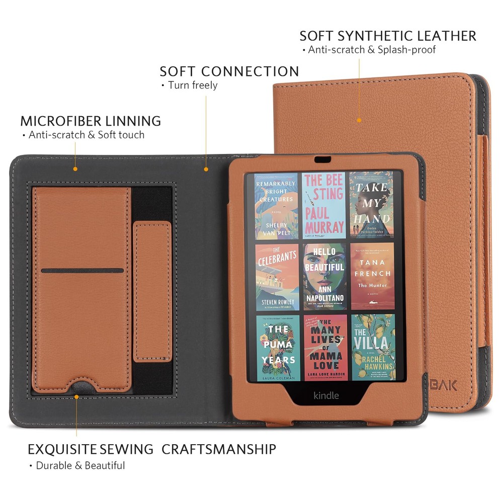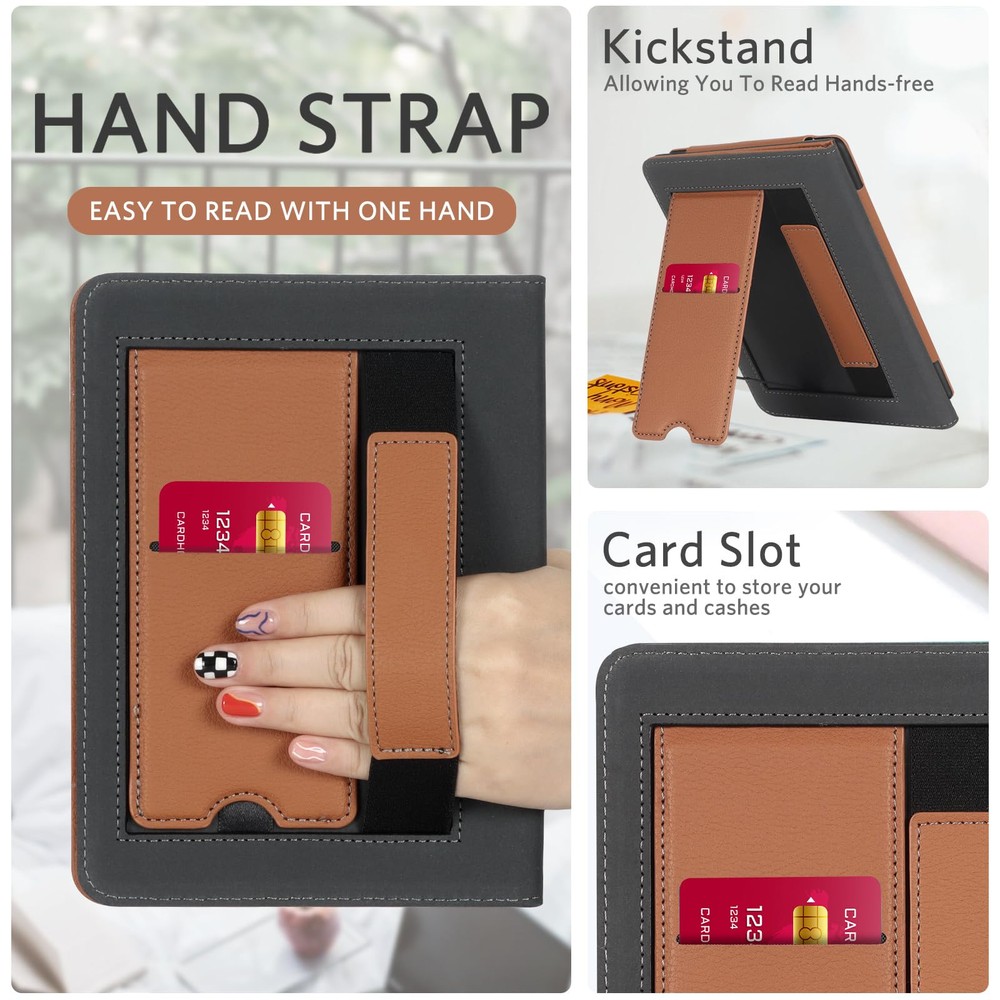 Perfect Fit: Our case is expertly designed to fit the all-new Kindle Paperwhite 12th Gen & Kindle Paperwhite Signature Edition 2024 (7") & Kindle Colorsoft Signature Edition (7"), ensuring a snug and secure fit. MATERIAL: Features the premium waterproof PU leather exterior, anti-scratch microfiber interior. This will definitely be a perfect choice of kindle case for you KICKSTAND: Foldable stand design could set your hands free during your reading. Build-in card slot is convenient to store your cards and cashes HAND STRAP: The bulit-in hand strap enables holding a kindle paperwhite in one hand, so you can indulge in the reading without any tiring feeling AUTO WAKE/SLEEP: The magnetic kindle paperwhite case automatically wakes your device when opened and puts it to sleep when closed. And the magnetic closure keeps the cover securely closed, protecting your device from dropping out