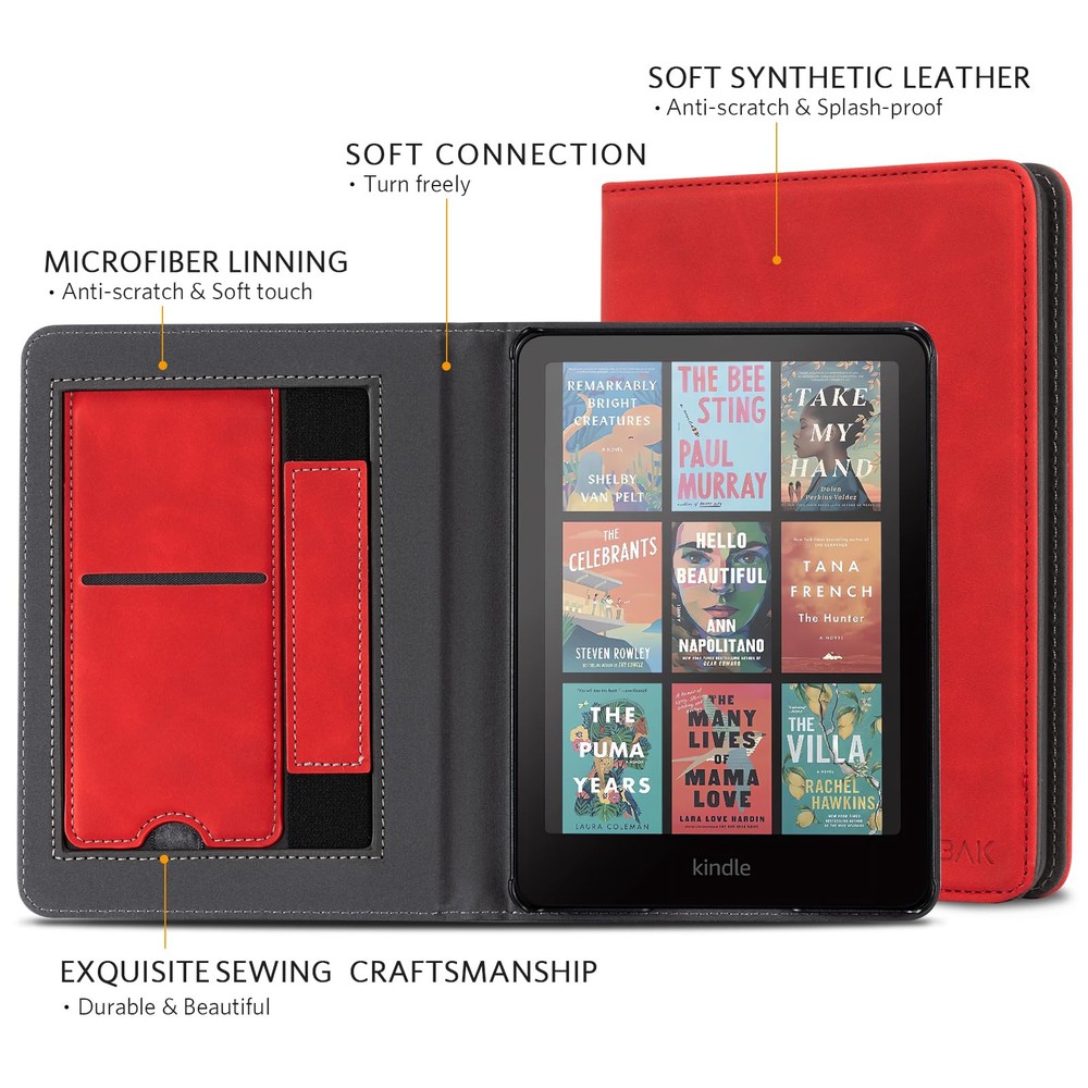 Perfect Fit: Our case is expertly designed to fit the all-new Kindle Paperwhite 12th Gen & Kindle Paperwhite Signature Edition 2024 (7") & Kindle Colorsoft Signature Edition (7"), ensuring a snug and secure fit. MATERIAL: Features the premium waterproof PU leather exterior, anti-scratch microfiber interior. This will definitely be a perfect choice of kindle case for you KICKSTAND: Foldable stand design could set your hands free during your reading. Build-in card slot is convenient to store your cards and cashes HAND STRAP: The bulit-in hand strap enables holding a kindle paperwhite in one hand, so you can indulge in the reading without any tiring feeling AUTO WAKE/SLEEP: The magnetic kindle paperwhite case automatically wakes your device when opened and puts it to sleep when closed. And the magnetic closure keeps the cover securely closed, protecting your device from dropping out