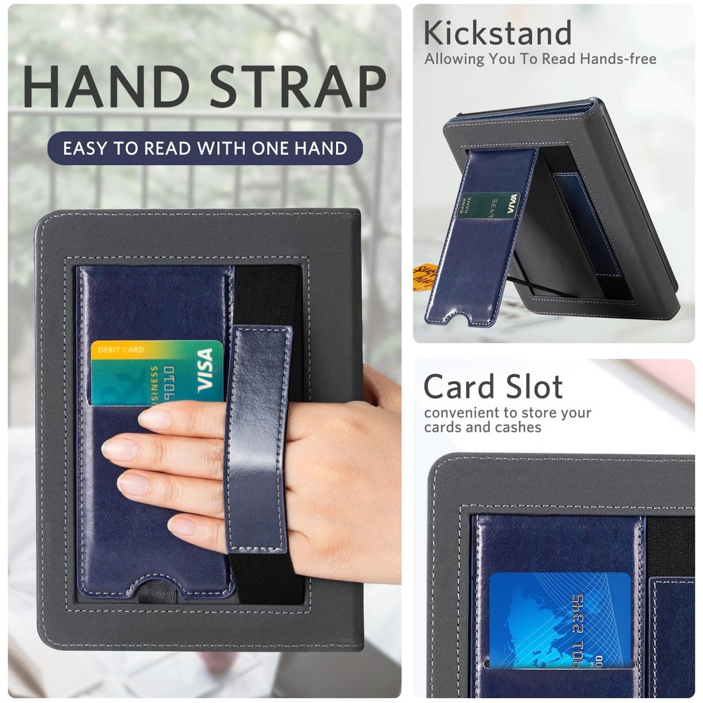 Perfect Fit: Our case is expertly designed to fit the all-new Kindle Paperwhite 12th Gen & Kindle Paperwhite Signature Edition 2024 (7") & Kindle Colorsoft Signature Edition (7"), ensuring a snug and secure fit. MATERIAL: Features the premium waterproof PU leather exterior, anti-scratch microfiber interior. This will definitely be a perfect choice of kindle case for you KICKSTAND: Foldable stand design could set your hands free during your reading. Build-in card slot is convenient to store your cards and cashes HAND STRAP: The bulit-in hand strap enables holding a kindle paperwhite in one hand, so you can indulge in the reading without any tiring feeling AUTO WAKE/SLEEP: The magnetic kindle paperwhite case automatically wakes your device when opened and puts it to sleep when closed. And the magnetic closure keeps the cover securely closed, protecting your device from dropping out