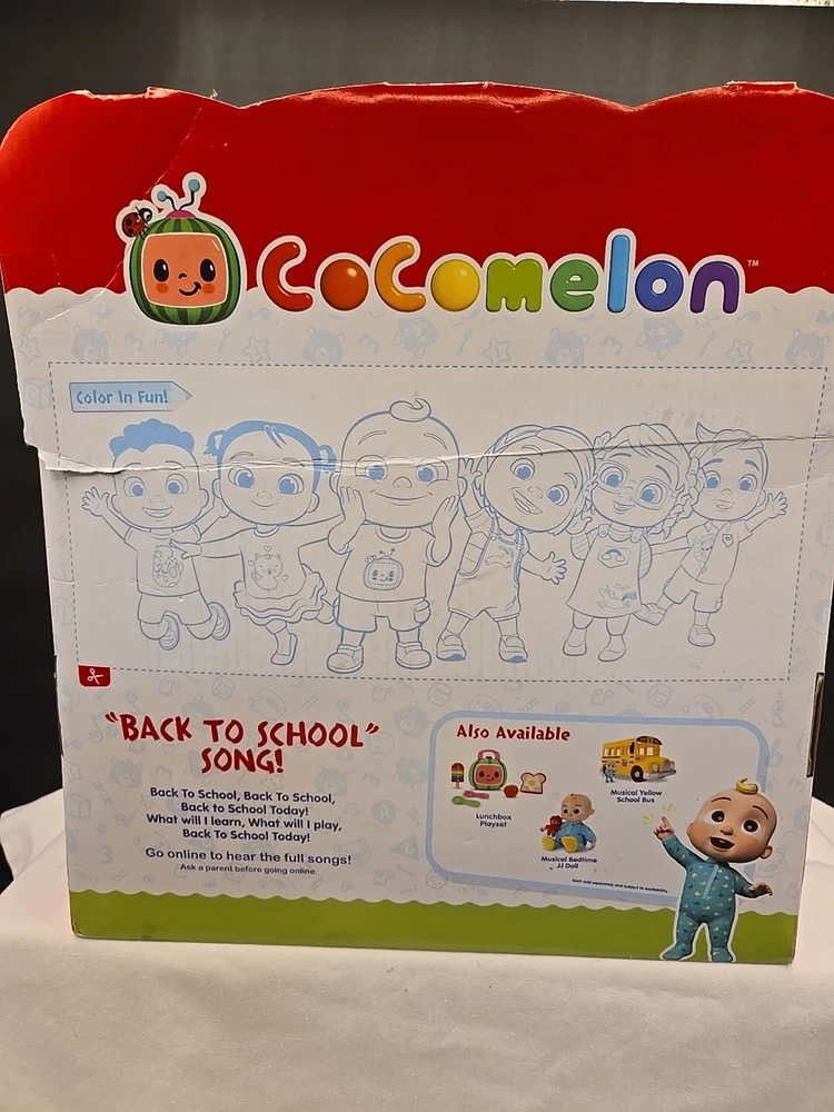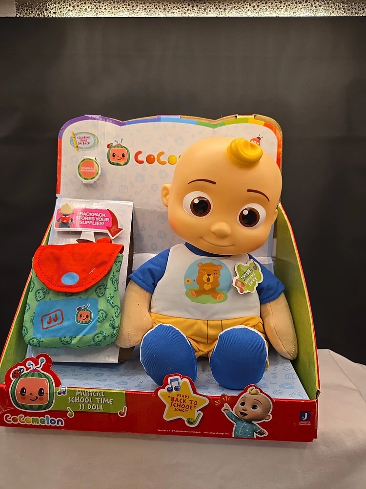 Introducing the CoComelon Back to School JJ Doll, a must-have for any fan of the popular animated series! This original and licensed action figure features a 10-inch boy doll with a light complexion, dressed in a colorful and multicolored outfit. The doll comes sporting a 1:10 scale, and plush and plastic material. The item also includes accessories, such as a backpack, and sings and talks, featuring the voice of jj. This toy is perfect for children aged 18 months and up, and is part of the CoComelon Animated Adventures series. The packaging is original and unopened, although the box has some damage. Get ready for endless hours of fun and adventure with this CoComelon JJ Doll!