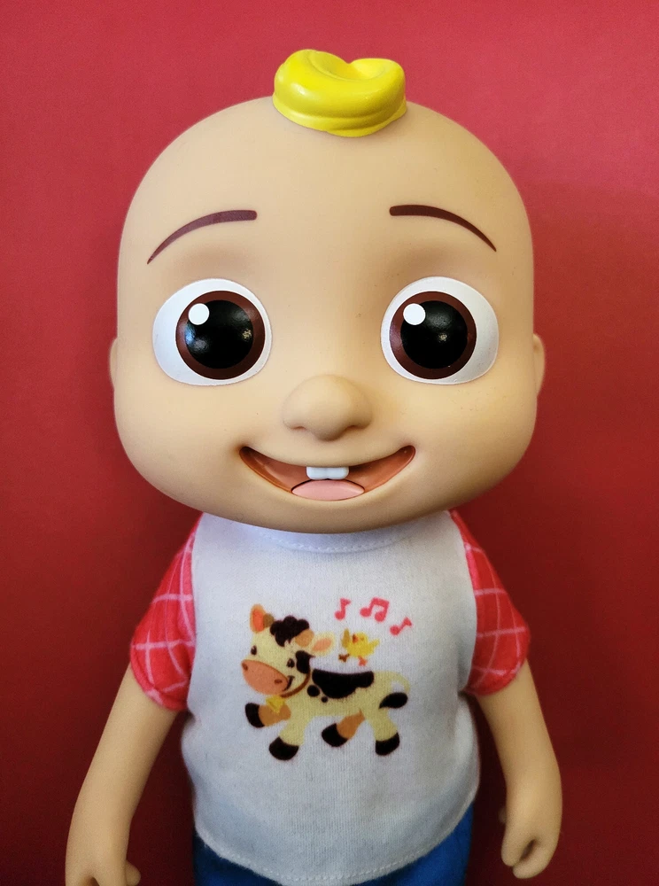 Age Level:2Series:CocomelonVintage:NoYear Manufactured:2021Movie:CocomelonTime Period Manufactured:2020-NowFeatured Person/Artist:SpoonScale:1:12Item Height:12 inSport:BoxingTheme:TV, Movie & Video GamesBrand:JazwaresCharacter:Brand, JJ, CocomelonVehicle Type:ShipTV Show:CocomelonSeller Notes:“Used in good condition tested and works”Original/Licensed Reproduction:OriginalMaterial:Plush, Hard Plastic, PlasticColor:BlueModel:Animator DollType:Action FigureItems Included:Shirt, ShoesFranchise:CocomelonFeatures:Singing, Talking, Batteries Included, With Sound, Battery Poweredgtin13:0191726412793UPC:0191726412793Animal Species:Baby