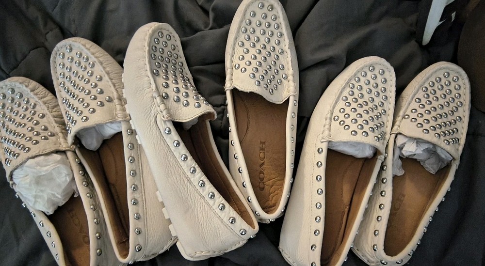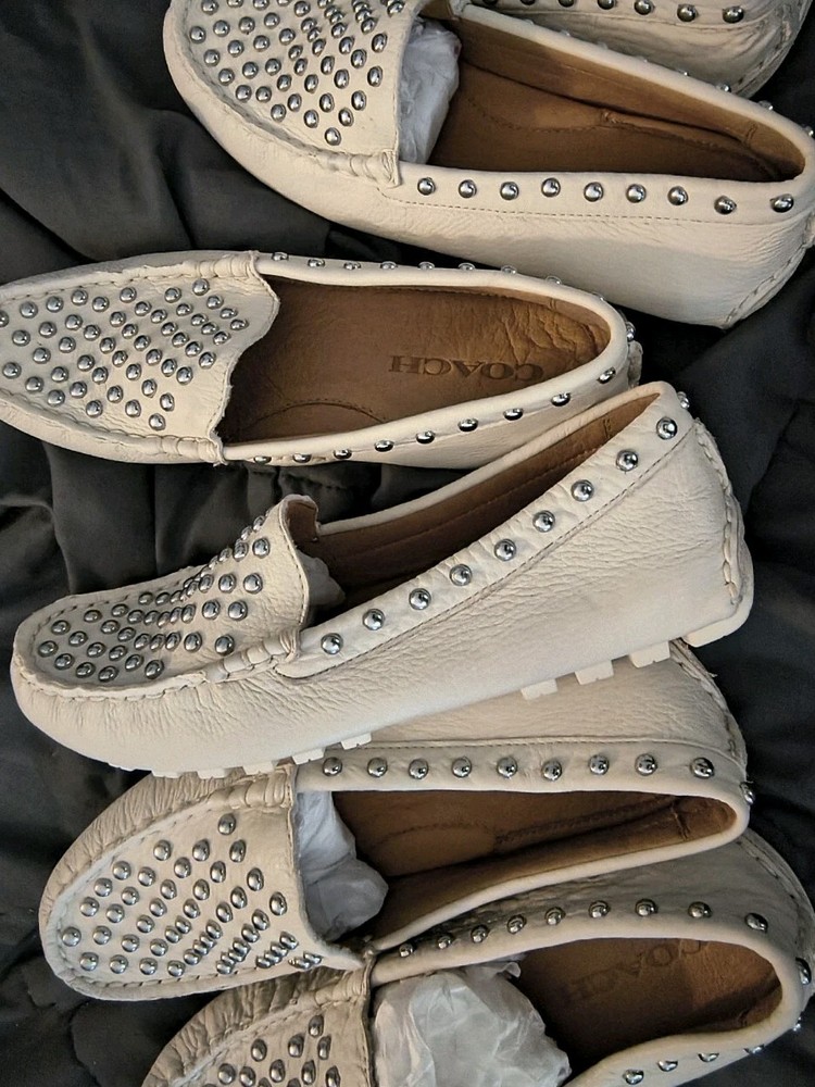 Elevate your shoe collection with these stylish Coach Arlene moccasin flats. Crafted from high-quality leather, these shoes feature a sleek white color that will complement any outfit. The cushioned insole and leather lining ensure maximum comfort, making them perfect for travel, casual outings, or business meetings. The Coach Fredrica model boasts a preppy theme and is available in AU size 5, UK size 5, US size 5.5, and EU size 32. The outsole is made of durable suede, while the upper material is also crafted from leather. These flats are perfect for women who value both style and comfort.