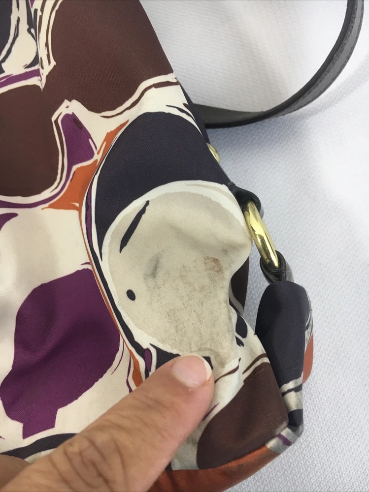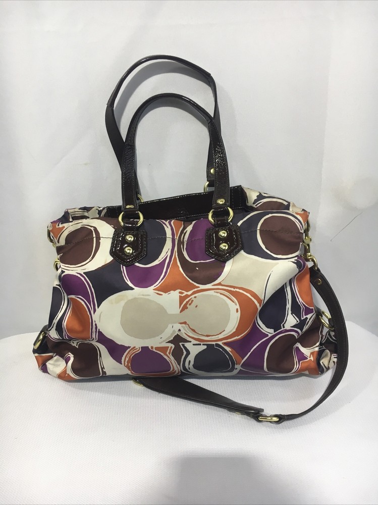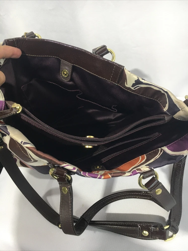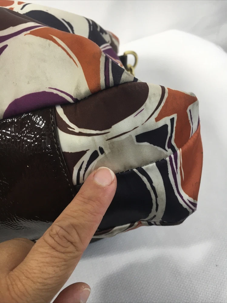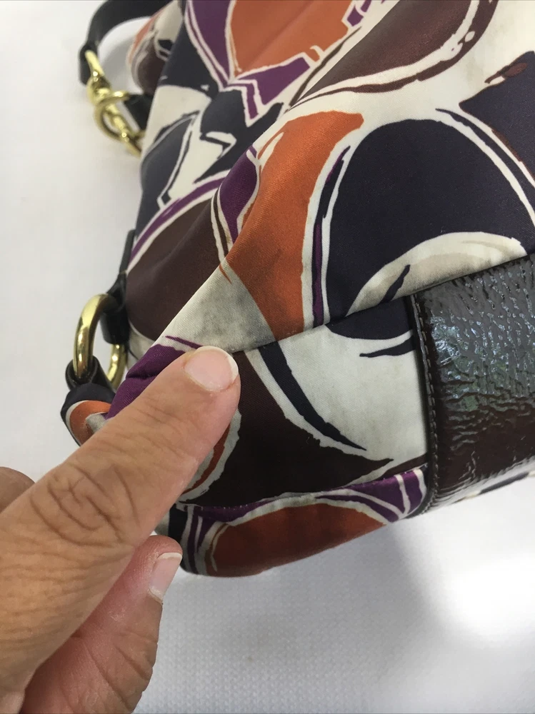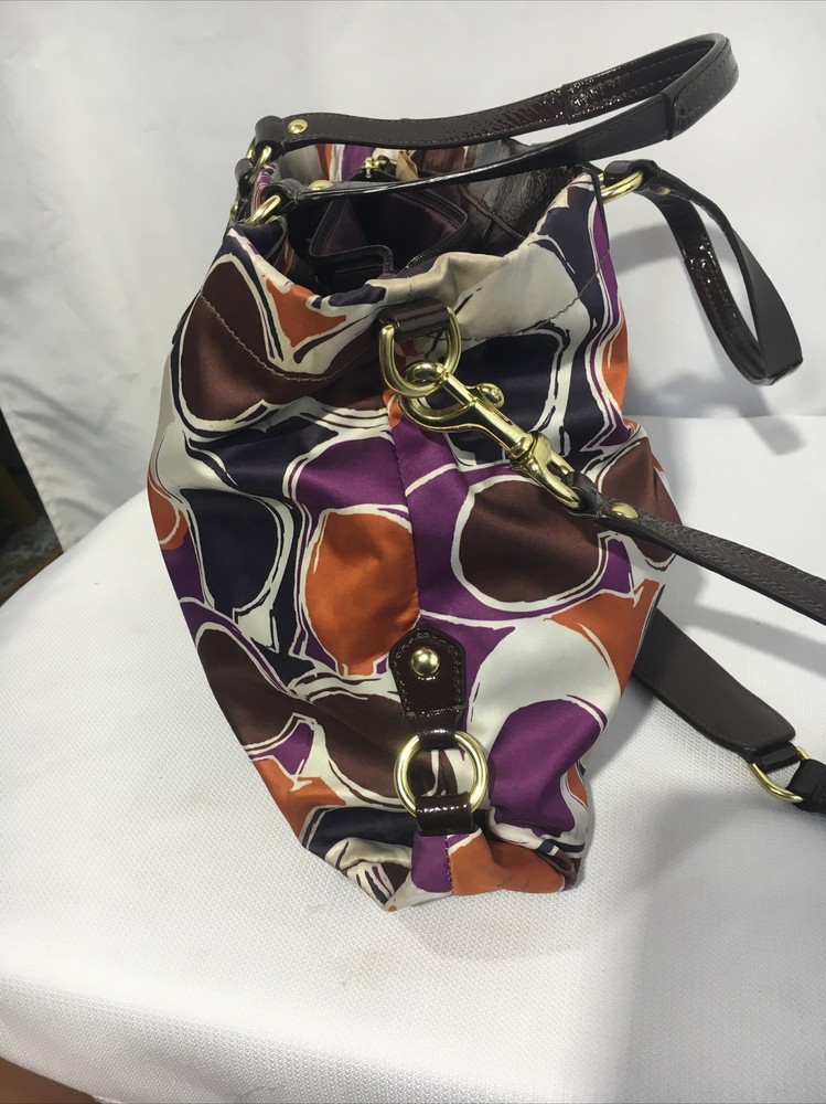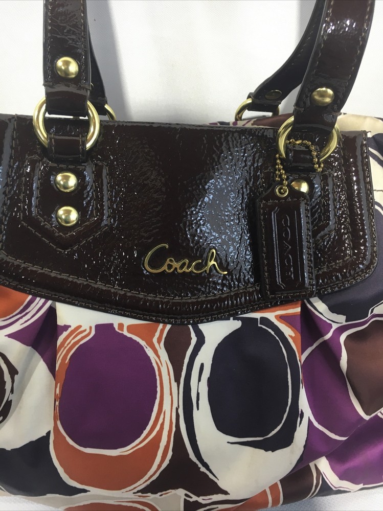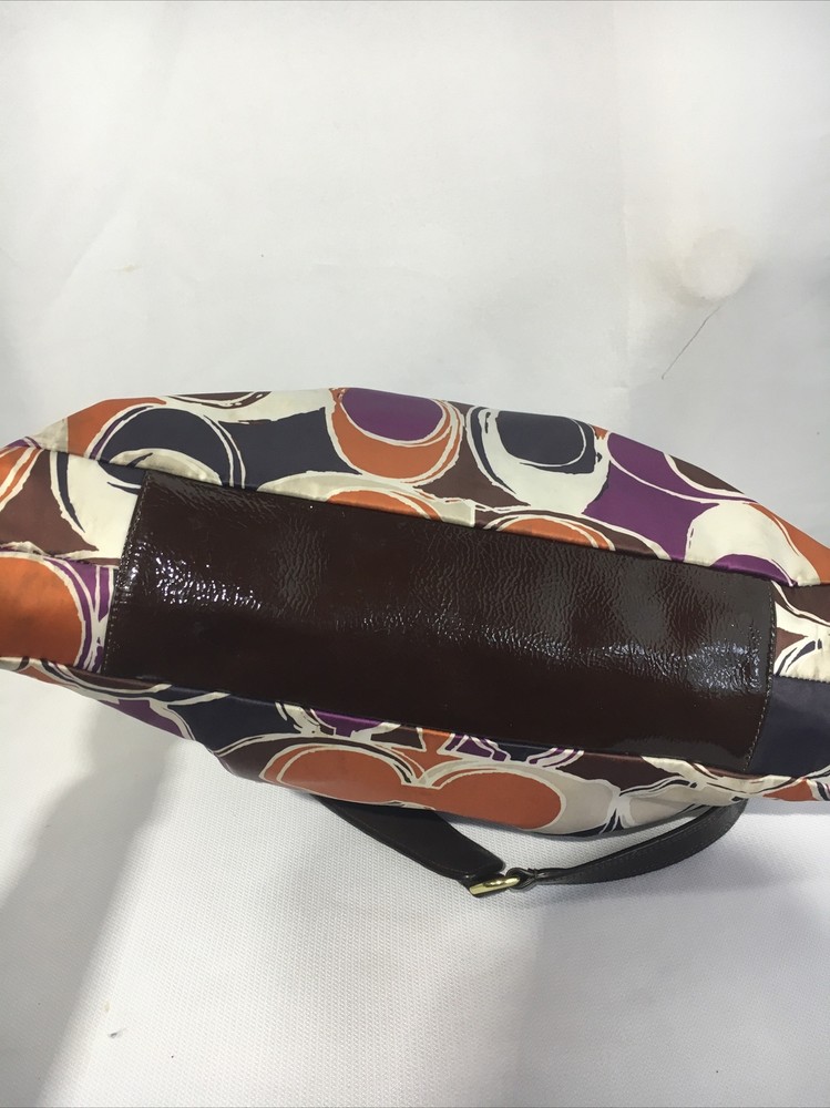 COACH ASHLEY OP ART SCARF Print Sateen Patent Mahogany SATCHEL Purse Bag F20113. See pictures.IM5