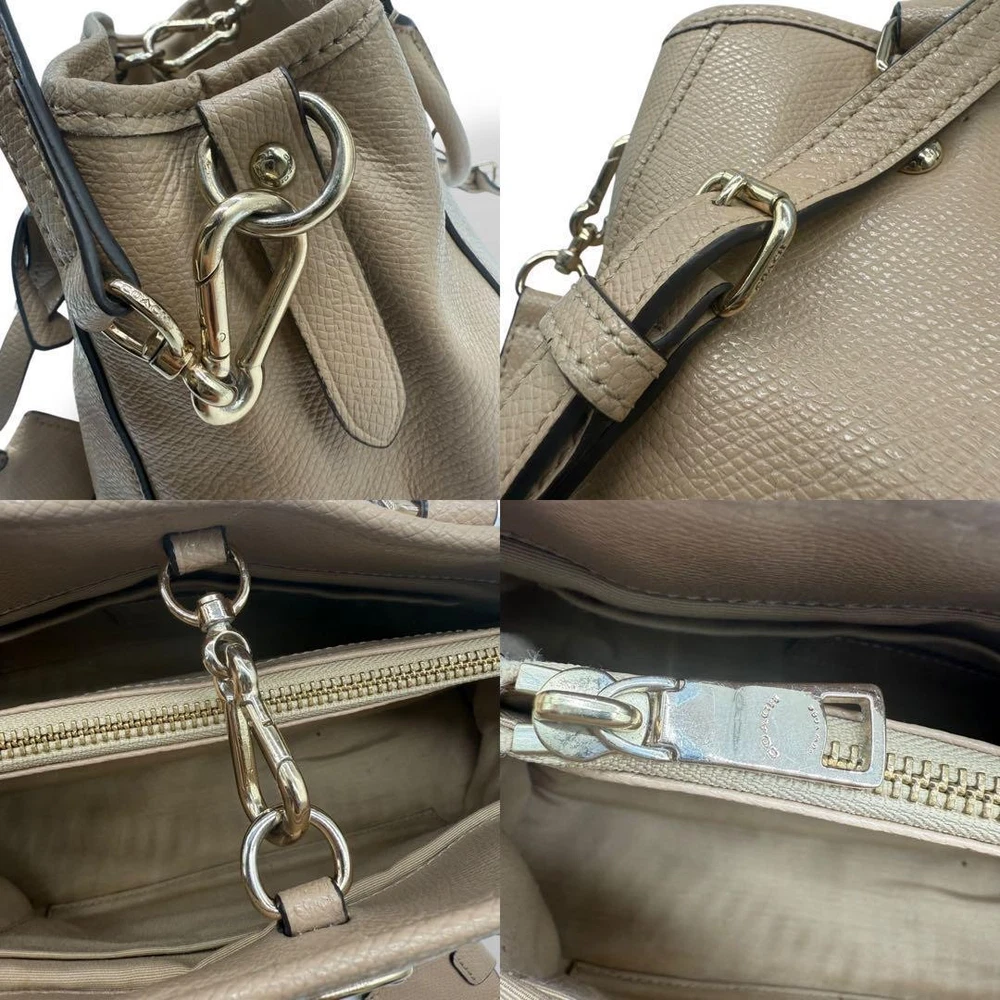 Coach Beige Leather 2Way Crossbody Shoulder Bag Authentic Excellent Condition Key Features ## Product Overview This is an authentic Coach beige leather 2-way crossbody shoulder bag, offering versatile styling options with its convertible design. Crafted from high-quality leather, it combines functionality with classic elegance, making it suitable for various occasions. ## Key Features and Benefits - Authentic Coach craftsmanship ensures durability and timeless style - Convertible design allows use as a shoulder bag or crossbody bag - Spacious interior with multiple pockets for organized storage - Elegant beige leather exterior complements a wide range of outfits - Well-maintained condition with minor signs of use, ideal for everyday use ## Technical Specifications and Details - Brand: Coach - Category: Bag - Exterior Material: Leather - Exterior Color: Beige - Size: 20 cm (7.87 inches) in height, 24 cm (9.45 inches) in width, 13 cm (5.12 inches) in depth - Handle Height: 9 cm (3.54 inches) - Shoulder Strap Length: 51 cm (20.08 inches) - Interior Pockets: 1 zipper pocket, 2 open pockets, 1 divider with zipper pocket - Hardware Color: Not specified - Closure: Not specified - Pattern: Not specified - Shape: Rectangular - Occasion: Casual, Everyday, Formal - Handle Style: Top handle and adjustable shoulder strap - Country of Manufacture: Not specified - Condition: Excellent with minor signs of use, including scuffs, dirt, and slight wear on edges and corners ## Product Condition This bag is in good condition with no major damages. There are some minor scuffs, dirt, and slight wear on the edges and corners, but it remains fully functional and stylish. The bag has no significant scratches or stains, making it a reliable choice for daily use. ## Main Selling Points - Authentic Coach product with verified authenticity - Versatile 2-way design for different styling options - High-quality leather construction for durability - Spacious interior with multiple organizational pockets - Elegant beige color suitable for various occasions - Compact yet roomy dimensions for everyday essentials ## Additional Information This Coach bag is a stylish and practical accessory, perfect for those seeking a reliable, authentic leather bag with versatile carrying options. Its classic beige color and well-maintained condition make it an excellent addition to any collection or daily wardrobe. Specifications Brand Coach Country Japan Style Woman Bag Department Woman Theme Bag California Prop 65 Warning No Product Description Item Title Coach Shoulder Bag 2Way Crossbody Turnlock Payment Supports managed payments Please pay within 5 days after auction is finished. About Us We are located in Japan. It's our pleasure to make you happy by proposing our recommend item. If you have any questions or request about items, please feel free to ask us. International Buyers - Please Note: -Import duties, taxes, and charges are not included in the item price or shipping charges. These charges are the buyer's responsibility. -Please check with your country's customs office to determine what these additional costs will be prior to bidding/buying. -These charges are normally collected by the delivering freight (shipping) company or when you pick the item up - do not confuse them for additional shipping charges. -We do not mark merchandise values below value or mark items as - gifts - The US and International government regulations prohibit such behavior. Thank you for your understanding.