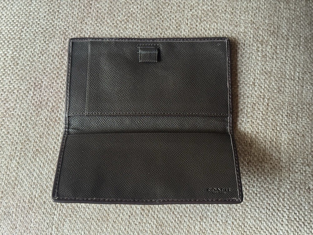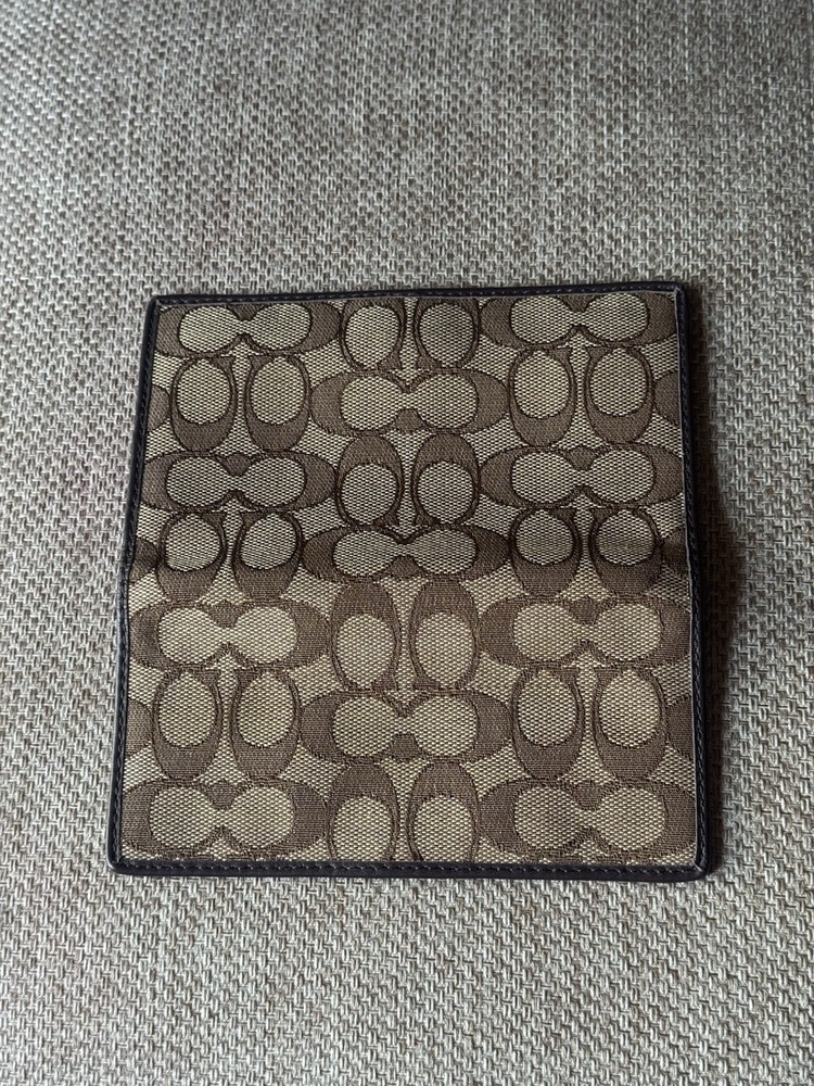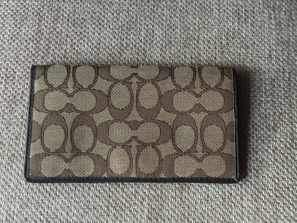 This Coach Brown Khaki Signature Canvas Checkbook Wallet Cover is a stylish and functional accessory for any woman. The wallet features a checkbook compartment, making it a practical choice for those who need to keep their checks organized. The canvas fabric type adds a touch of durability to the wallet, ensuring that it will last for a long time. The brown color and checkbook design give the wallet a classic and chic look that will complement any outfit.