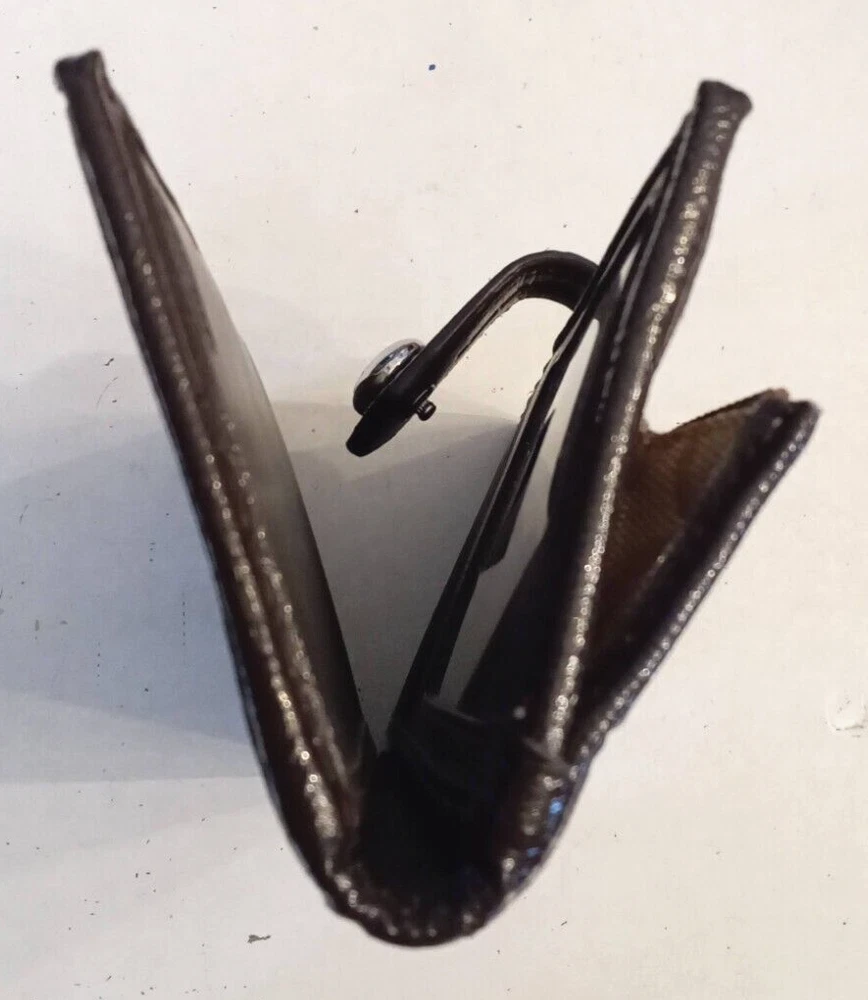 This is a beautiful Y2K vintage Coach brown leather bi-fold snap wallet with a signature design. Measures approx 6.25" wide by 3.25" tall by 1" thick (when empty). It features 10 card slots, an ID window, and an outer zipper pocket. Closes with a signature metal snap Clean, Smoke Free, Pet Free Home Listing more nice hand bags this week, please check my store Use the cart feature in the listing to combine purchases and save postage,