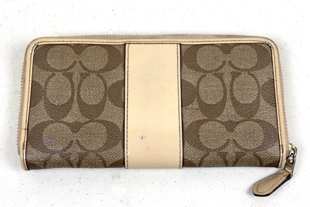 Coach Signature Canvas / Leather Brown Taupe Accordion Zip Around Long Wallet there are few minor spots on the middle strip and inside is excellent measures about 7.5x4x1 has lots of slots, a middle zip pocket for coins, and lot slot for bills See photos Check out my store, 1000’s of vintage and collectibles items. Guarantee, Return, Shipping, and Tax Policies: We guarantee our products. We allow return or exchange. Unless STATED Otherwise Email us before sending it back to resolve any issues. Taxes for those US States that require them will be collected by eBay. International Buyers - please note: Import duties, taxes and charges are not included in the item price or shipping charges. Please check with your country's customs office before bidding/buying. Thank You!