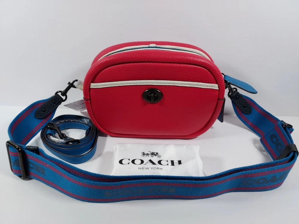 100% authentic new with tag and dust bag. This is a Coach retail store bag. Stored in smoke-free, pet-free environment. Soft pebble leather One credit card slot Inside multifunction pocket Zip closure, fabric lining Outside turnlock and magnetic snap pockets Detachable strap with 21 1/2" drop for shoulder or crossbody wear Includes interchangeable webbing strap with 25" drop 9" (L) x 6 1/2" (H) x 2 3/4" (W) Style No. C6833