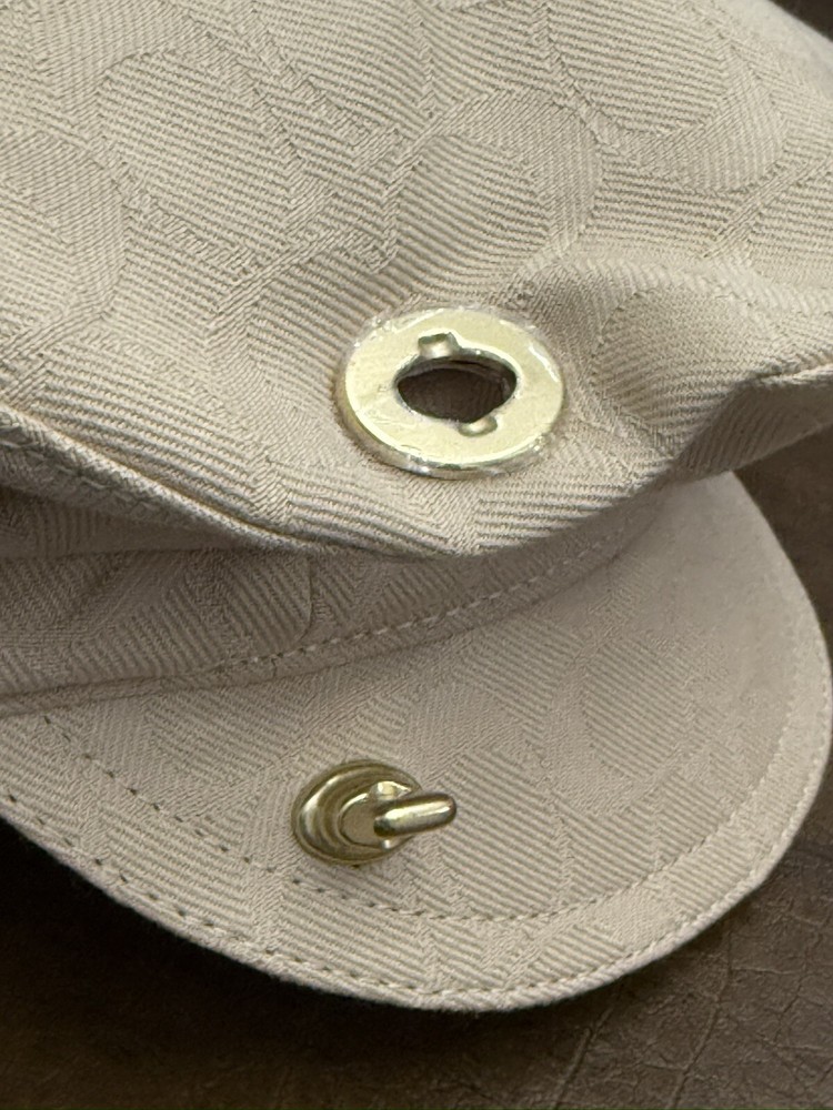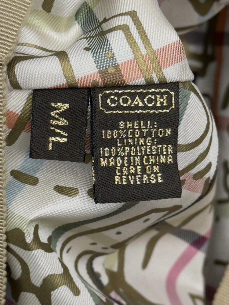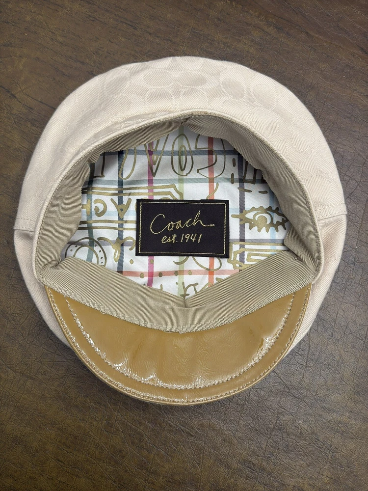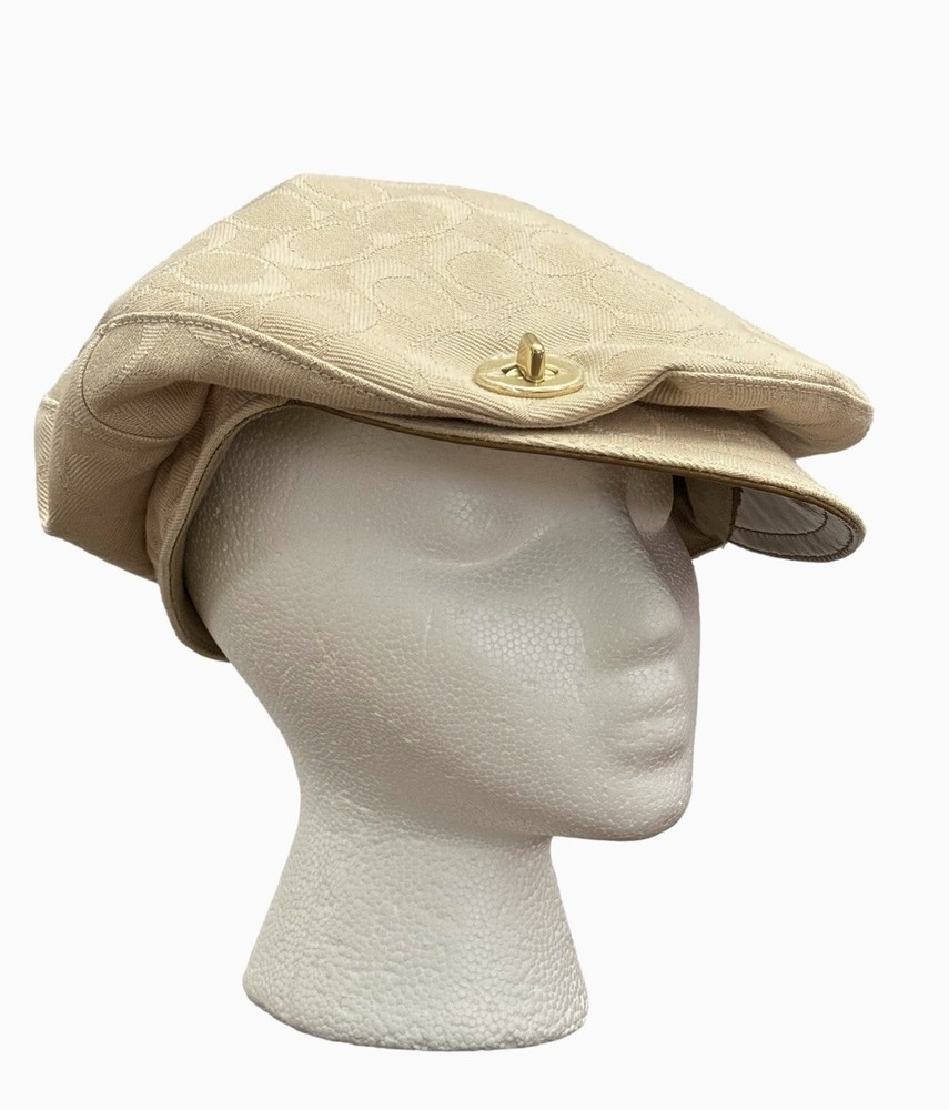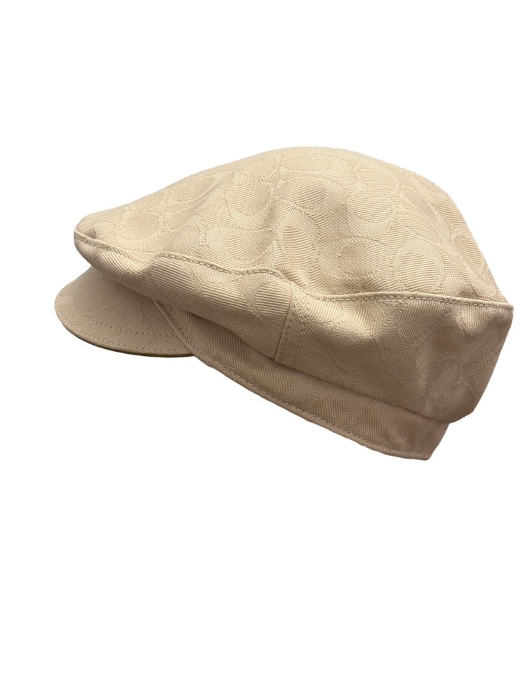 This Coach women's hat is a stylish addition to any wardrobe. The beige color and kissing C's pattern make it perfect for a variety of occasions, from travel to workwear to parties. The hat features a twist lock and Coach logo accents, Poppy collection lining, adding a touch of designer flair. Made from a lightweight and comfortable blend of polyester and cotton, this hat is perfect for all seasons. The jacquard fabric type ensures durability and longevity, while the lined interior provides added comfort. With its versatile style and multiple themes (including designer, hippie, punk, peasant, city, classic, retro, and logo), this hat is sure to become a favorite among fashion-conscious women. Brand New Without Tag! No damage! Thank you for stopping by!