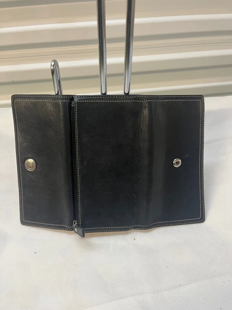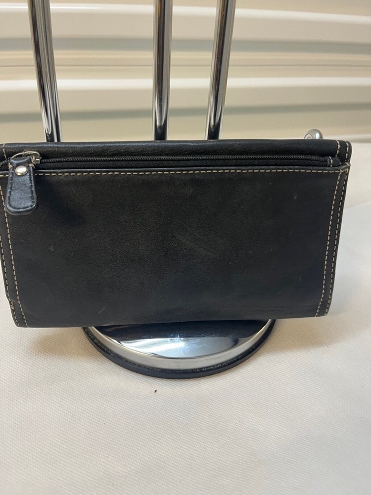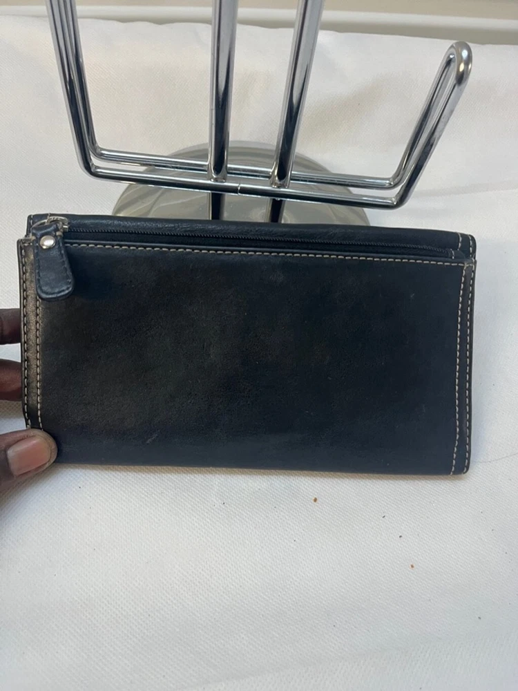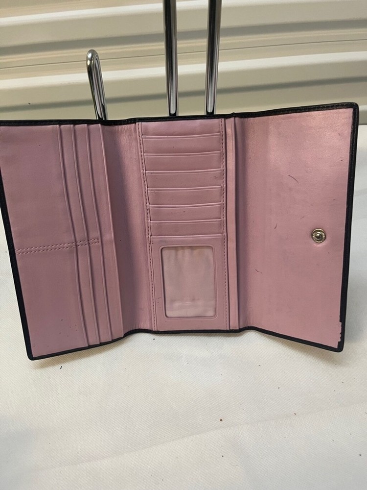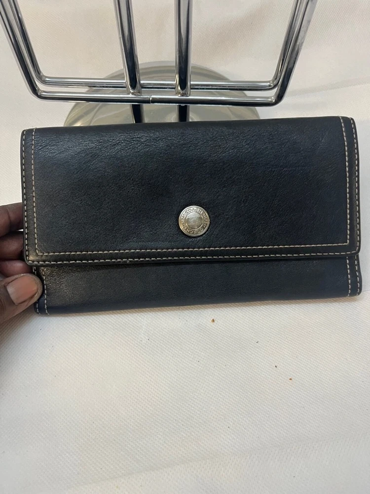 Coach Chelsea Black Leather Credit Card Trifold Long Wallet 100% authentic In pre-owned condition, some pen marks on the inside of the wallet (please see pictures) Features: - Material: leather - Color: black - Multiple credit card slots and cash holders inside Measurements: 7.5" x 4'' x 1"