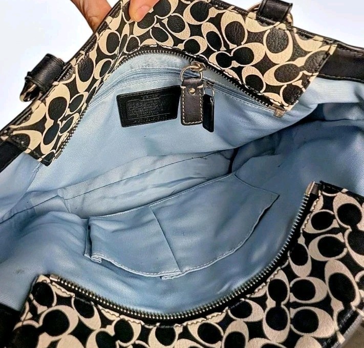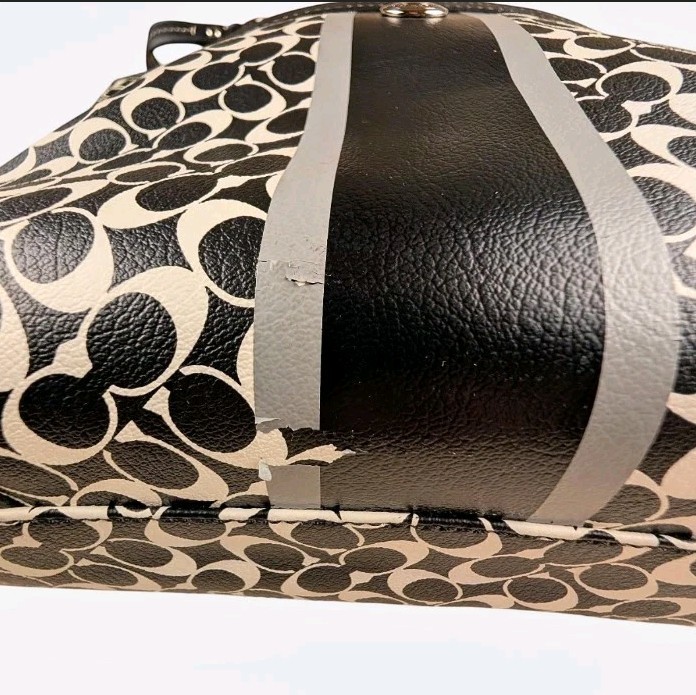 Pen mark in the lining. Purple stain on the wallet. Bottom of the stripe is peeling. Overall, the flaws are hard to see unless you're up close. You're going to beat up your bag- why not save some money and get it pre-loved?
