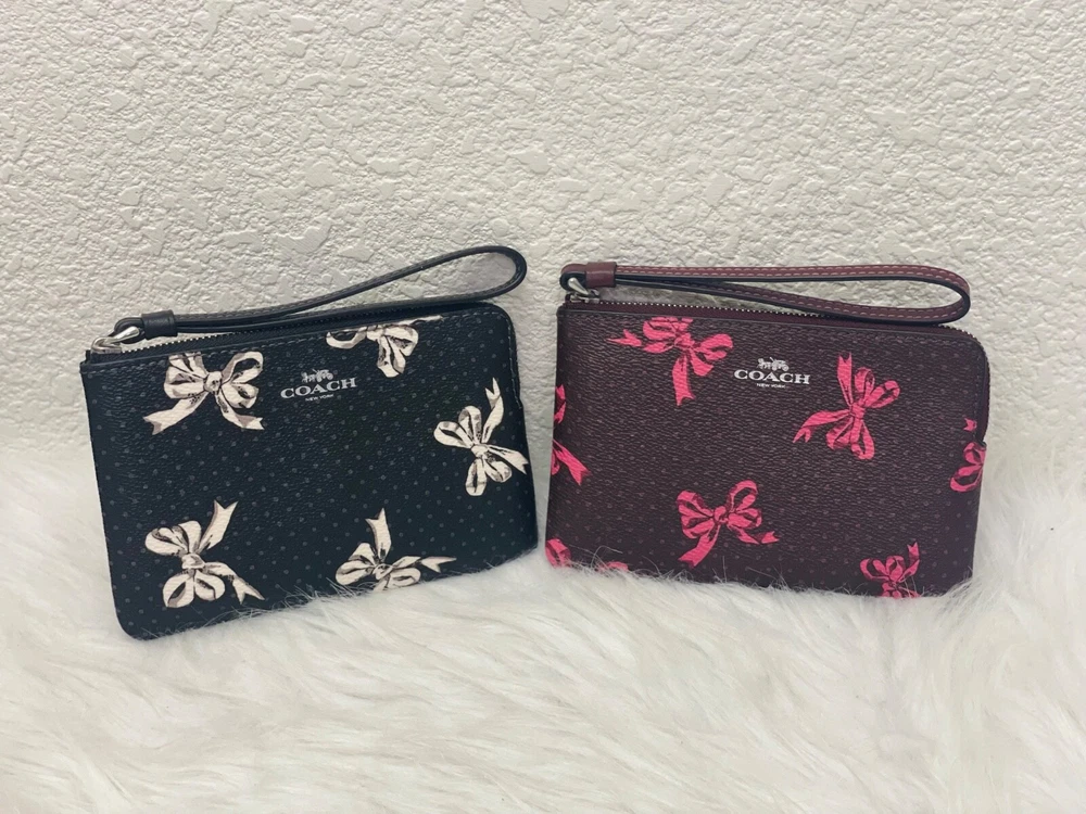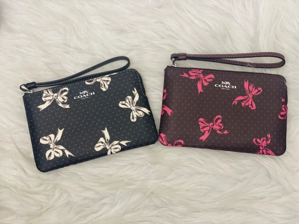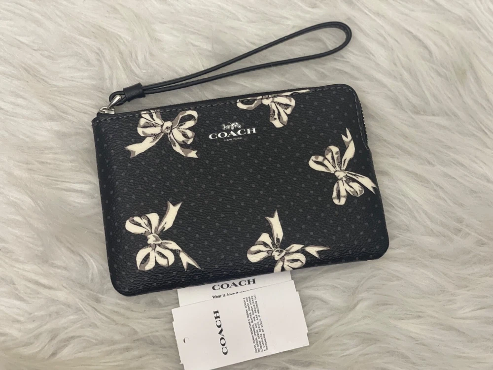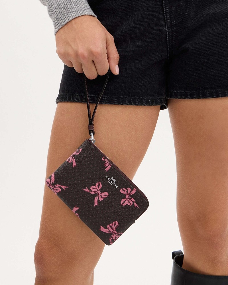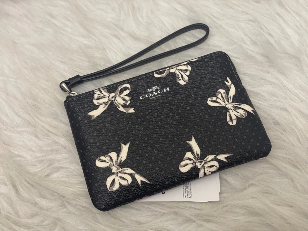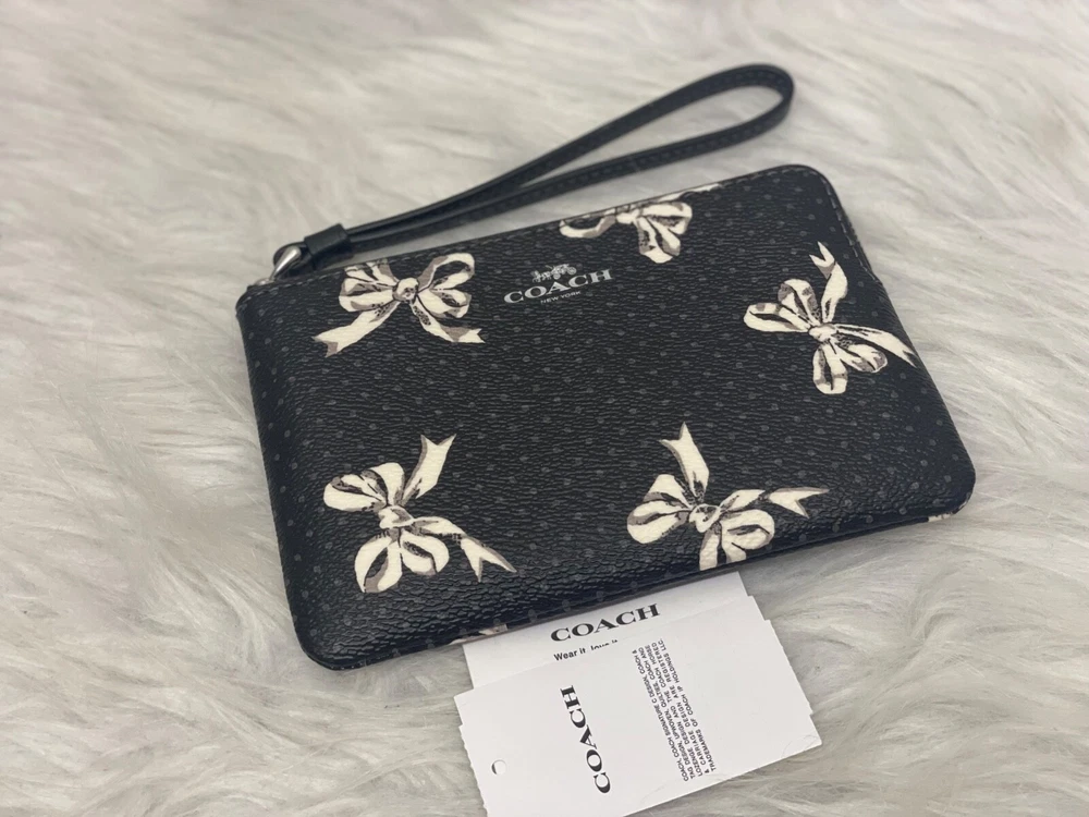 Coach Corner Zip Wristlet with Chic Bow Print CZ441