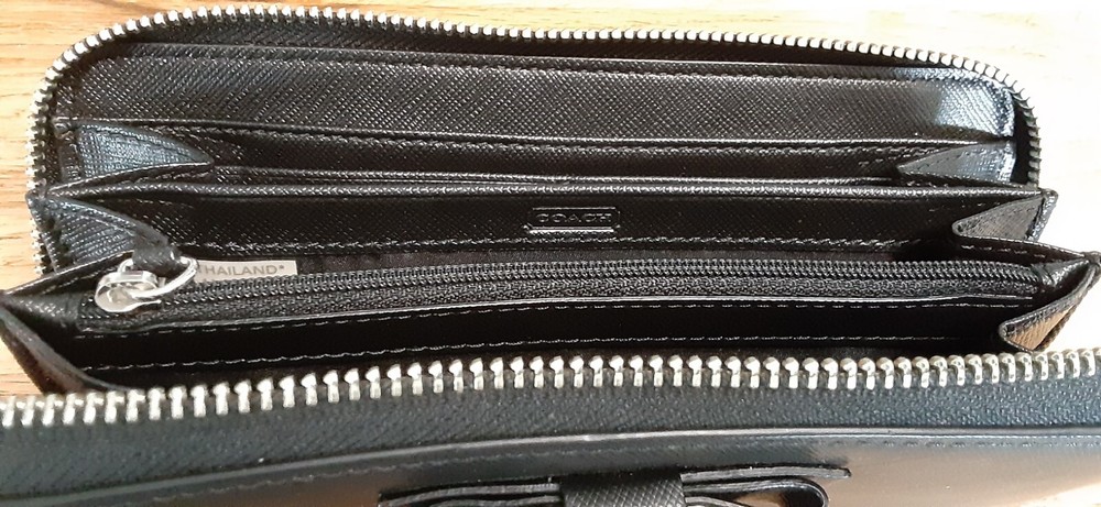 Coach wallet, Darcy with bow front. Black leather. Pre-owned, NEVER USED, like new. No rips, stains, or tears.
