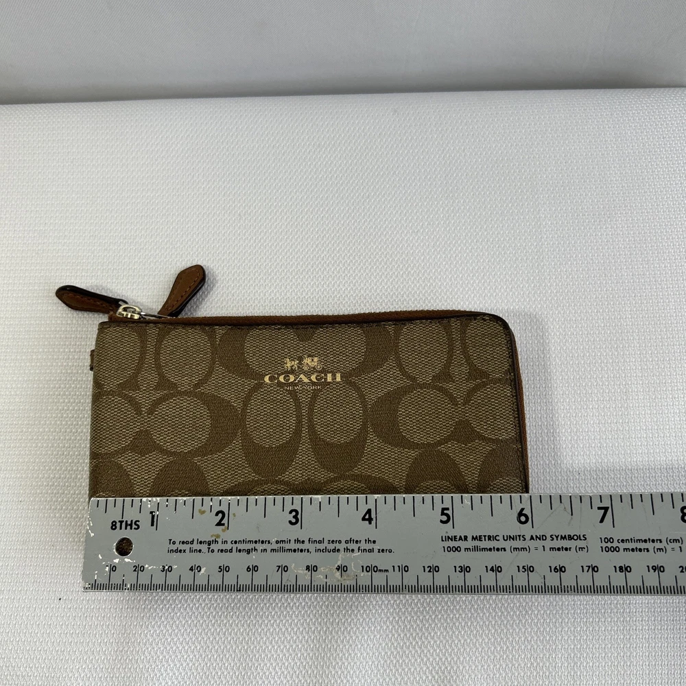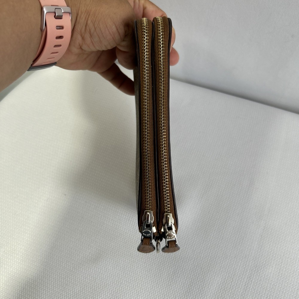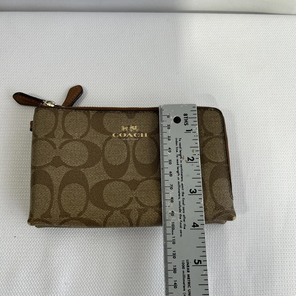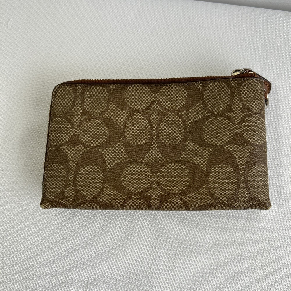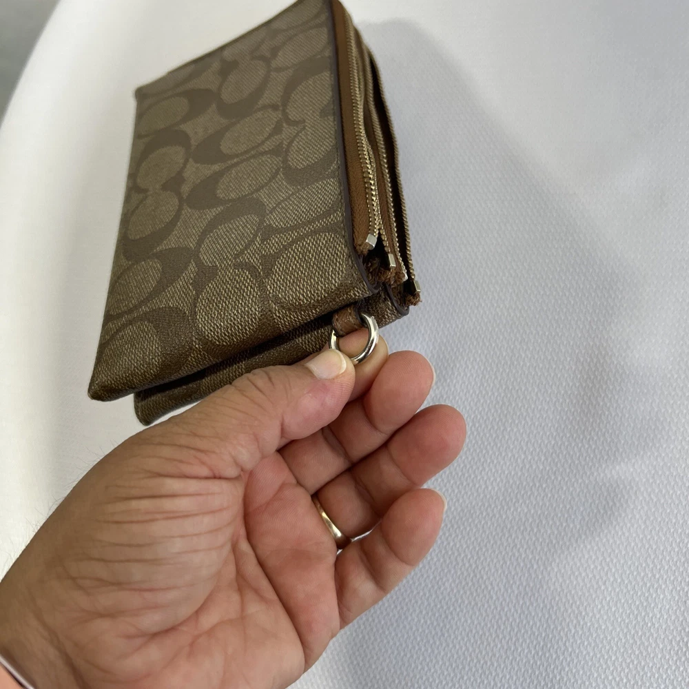 Coach Double Corner Zip Wristlet/Wallet Signature F64131 Brown No Strap **