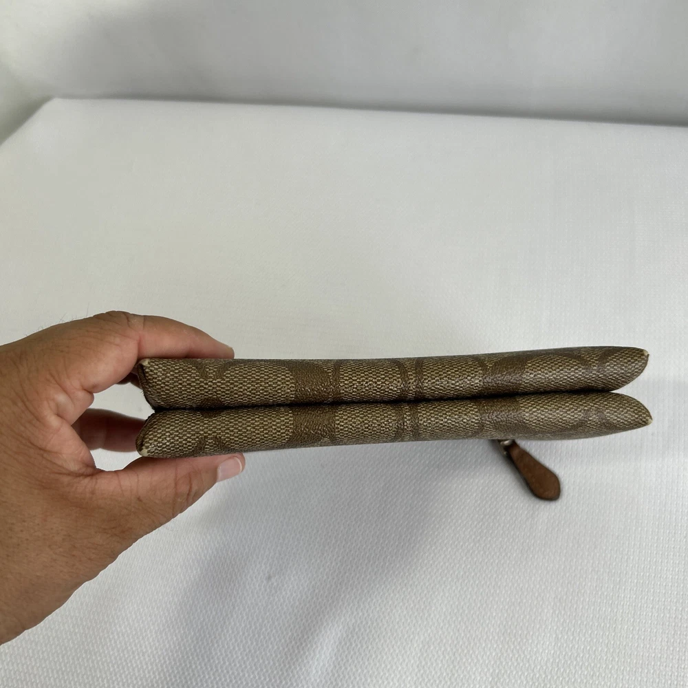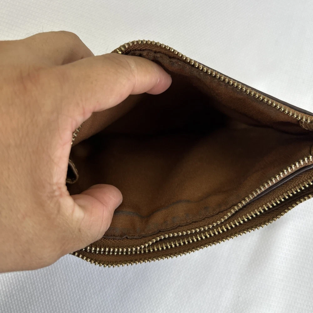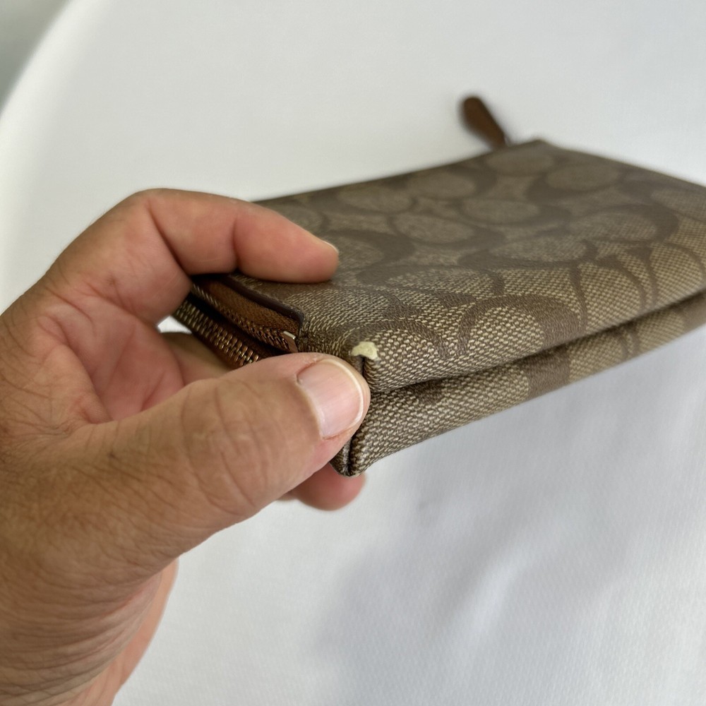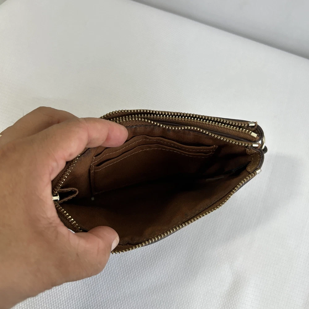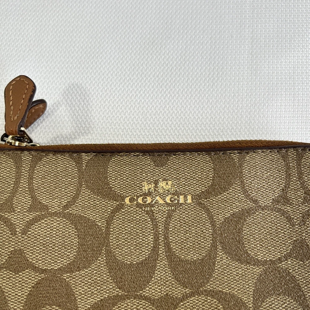 Coach Double Corner Zip Wristlet/Wallet Signature F64131 Brown No Strap **