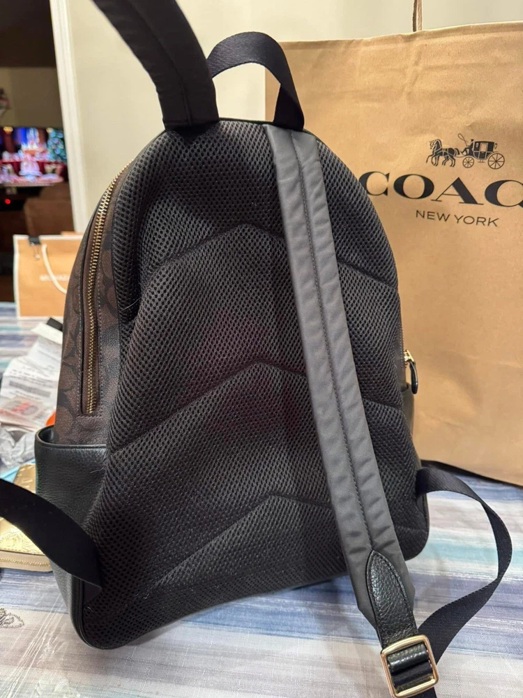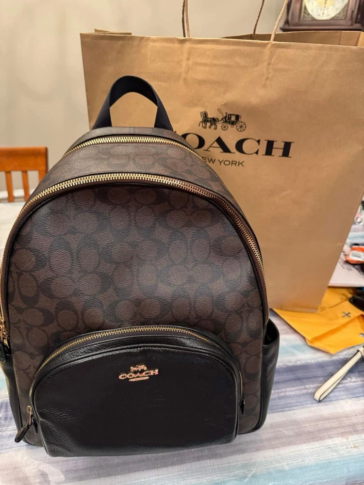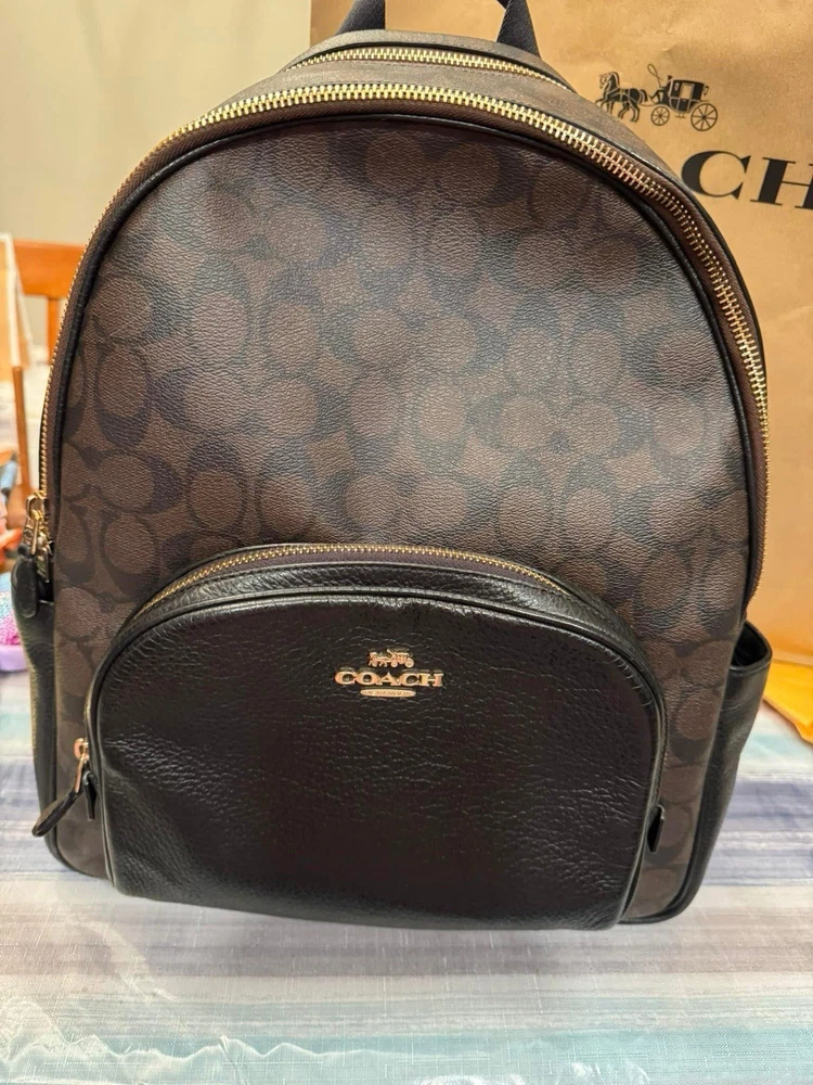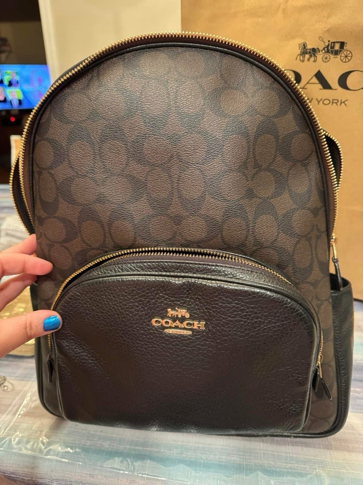 Crafted for the modern woman, the Coach Court Double Zip Backpack seamlessly marries style with function. Its robust canvas and leather exterior is complemented by a versatile multicolor palette, while the refined silver hardware adds a touch of understated elegance. The backpack features a secure zip closure, with additional zip accents that enhance its designer aesthetic. Within its fabric-lined interior, you'll find ample space to carry your essentials. The leather handle and straps ensure comfort and durability, whether you're heading to the office or out for a weekend adventure. The bag's sleek, solid pattern and lack of personalization strike a perfect balance between timeless and trendy, making it a staple accessory for any wardrobe.