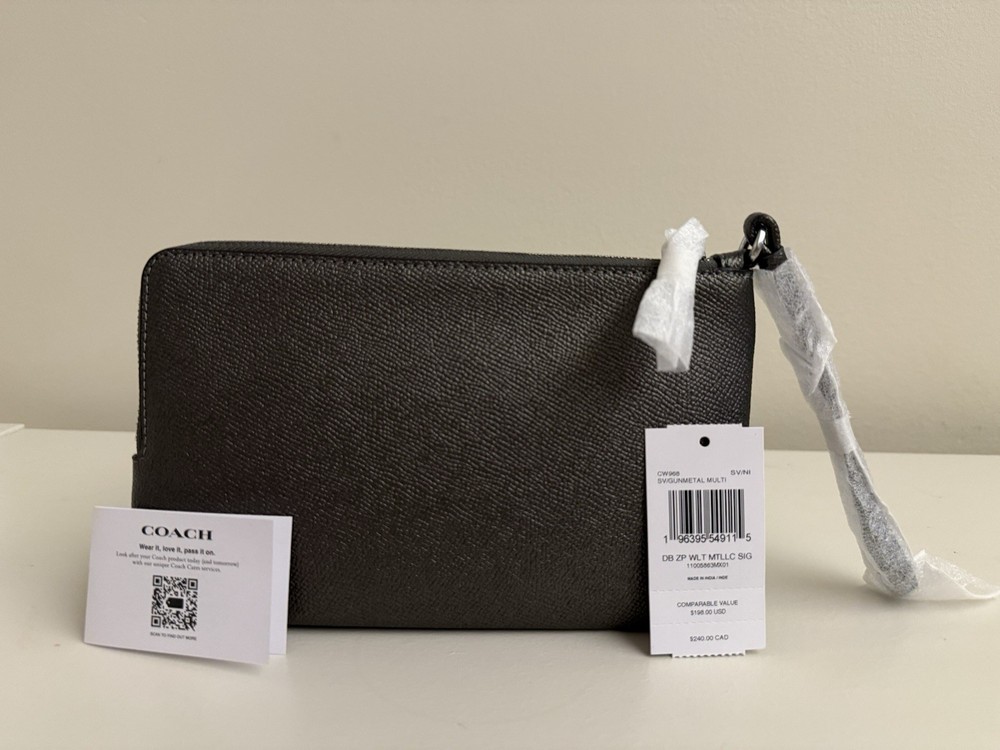 This wallet is sleek and stylish—perfect for everyday use! The double zip design keeps everything secure, and the black canvas with silver hardware looks so classy. Love that it’s new with tags and arrived quickly. Highly recommend!
