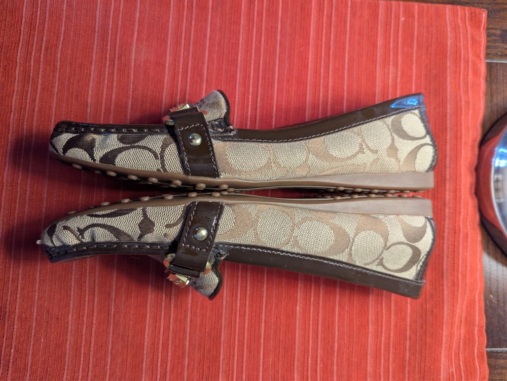 These loafers are so chic and comfy—perfect for dressing up or keeping it casual! The soft cotton upper feels great, and the classic Coach C logo adds a luxe touch. They show a bit of wear at the toe, but that just gives them character. Love how versatile they are—goes with everything! A great find for any stylish woman.
