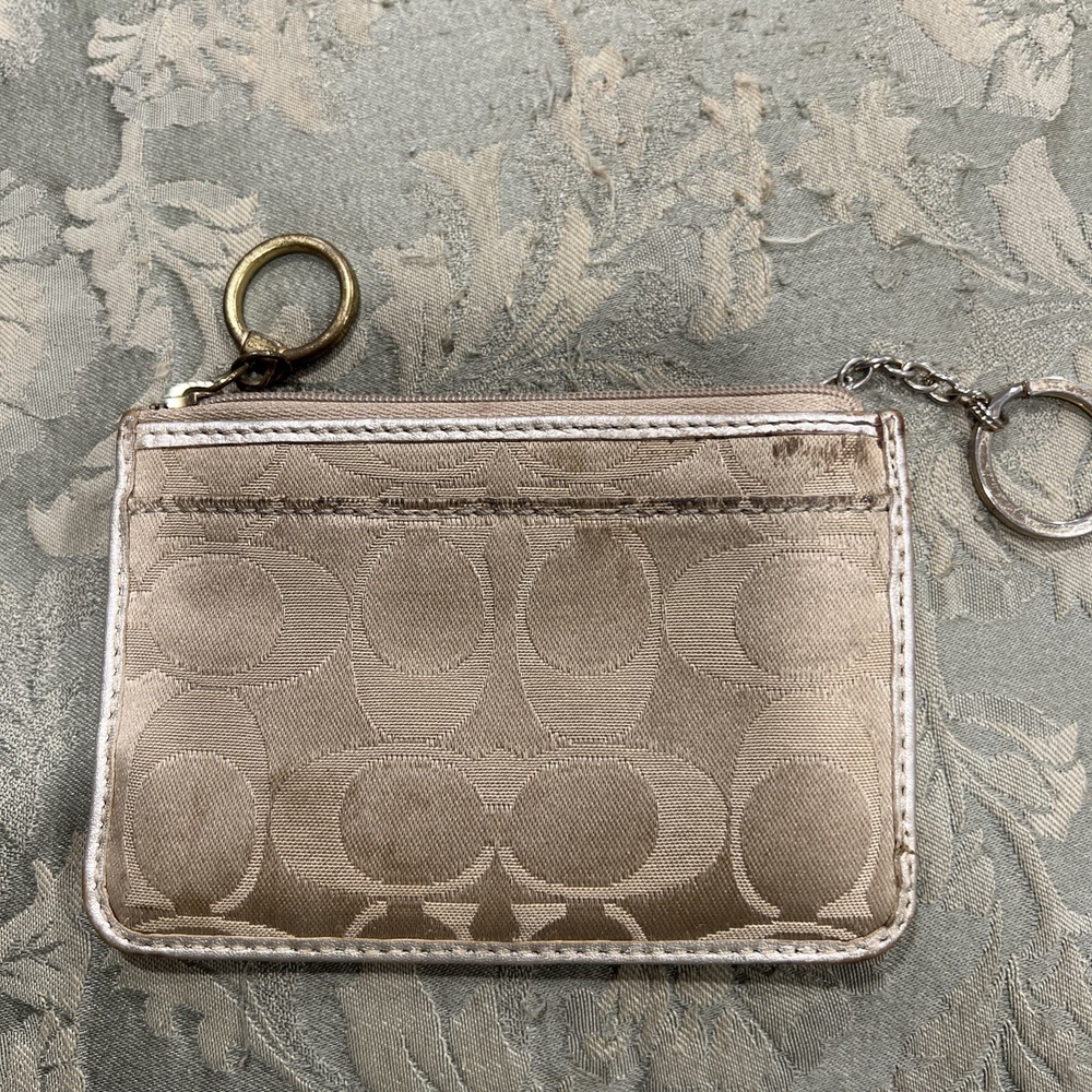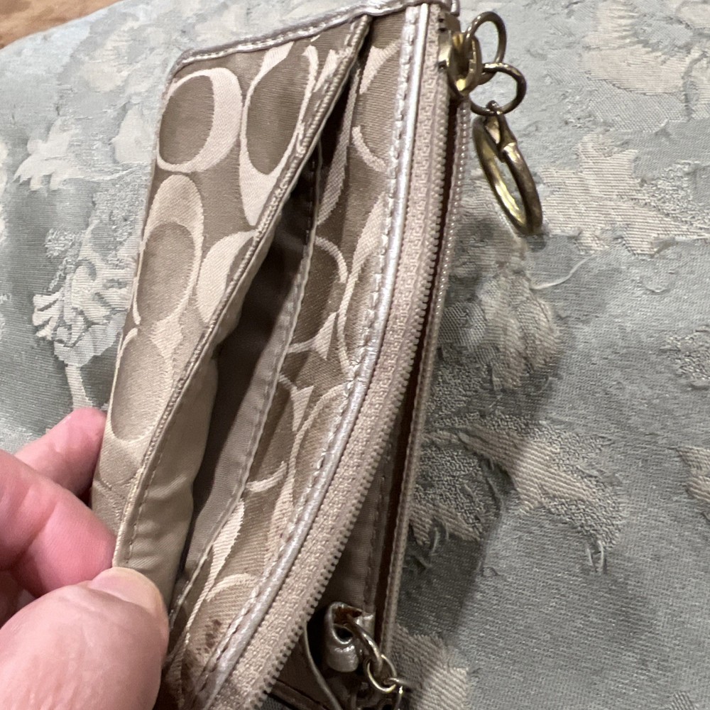$ 31.68Coach Black & Gray Signature Jacquard Fabric Buckle Trifold Wallet Vintage