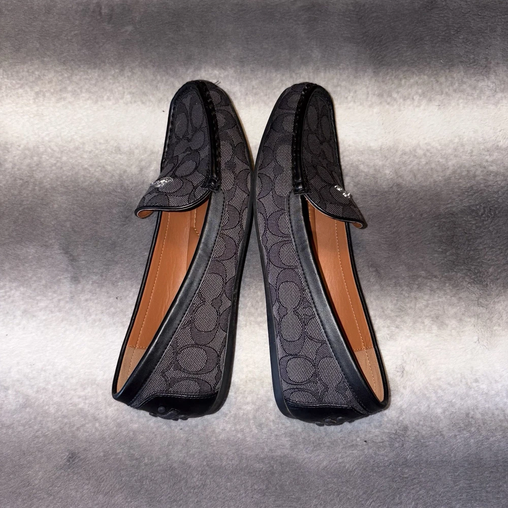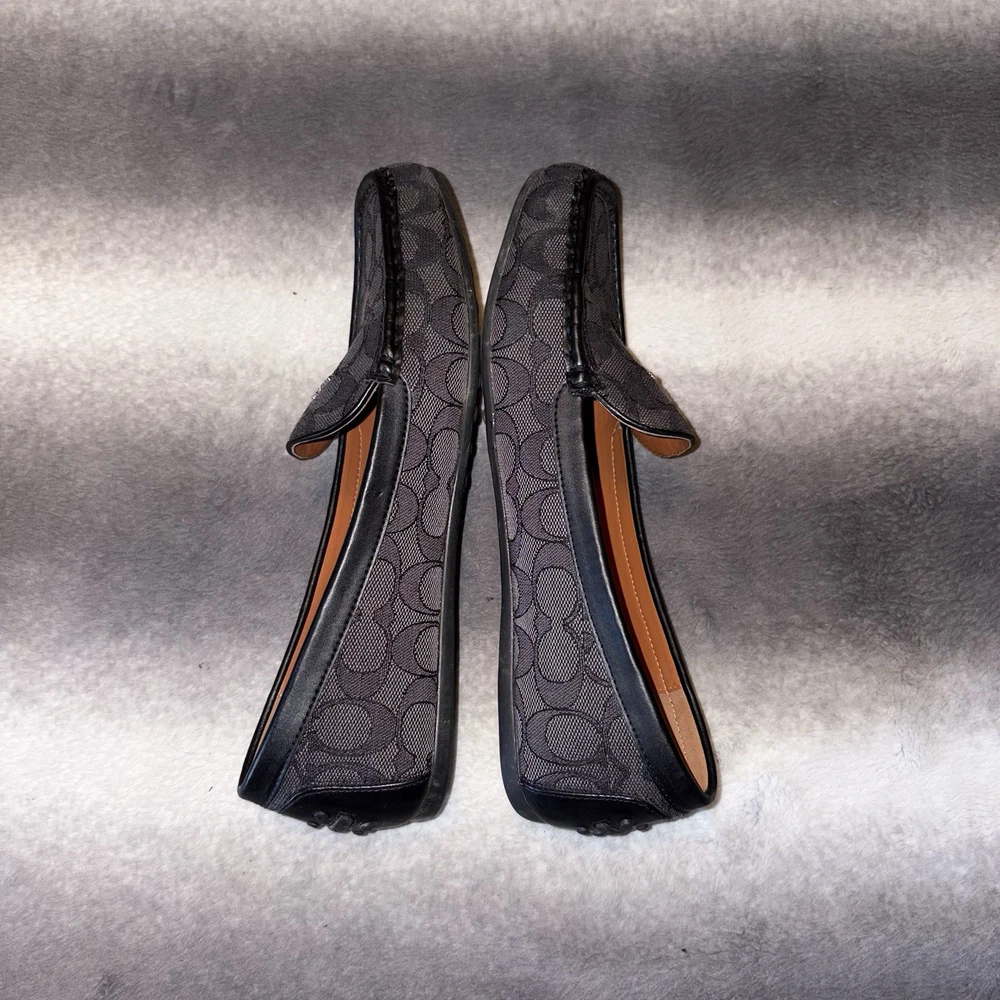 Elevate your casual wardrobe with the Coach Gable Loafer, a perfect blend of style and comfort. Crafted in a sophisticated gray and black signature jacquard and leather these loafers feature a convenient slip-on design and a durable rubber outsole, making them ideal for everyday wear. Whether you're heading to a brunch with friends or running errands around town, these loafers offer a chic and effortless look. The iconic Coach branding adds a touch of elegance to any outfit. Pre-owned and in excellent condition. Keywords: Coach loafers, women's shoes, gray loafers, casual footwear, slip-on shoes, rubber outsole, signature jacquard, women's size 9.5, Gable Loafer, stylish loafers, comfortable shoes, iconic branding, everyday wear, pre-owned shoes, Coach style G4175. Brand: Coach Us shoe size: 9.5 Style: Loafer Color: Gray Department: Women Upper material: Jacquard Features: Slip-on, Rubber outsole, Iconic Coach branding Occasion: Casual Closure: Slip On Outsole material: Rubber Pattern: Signature Jacquard