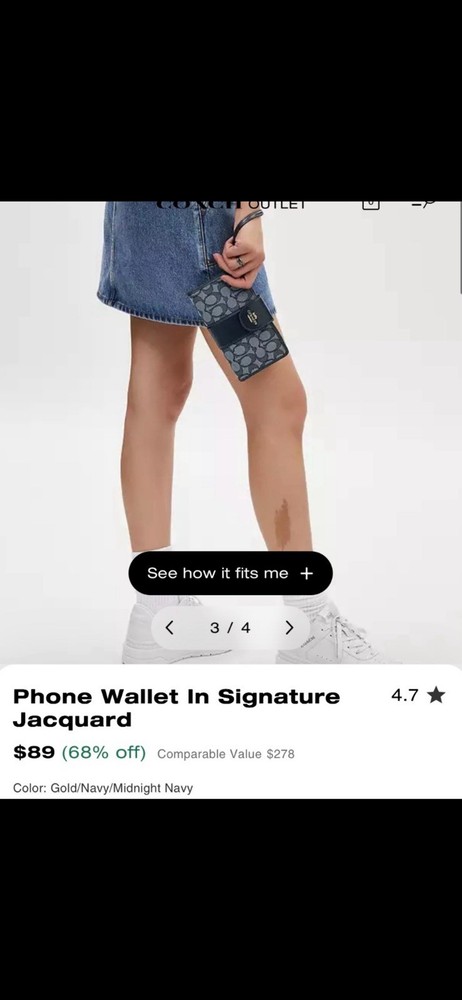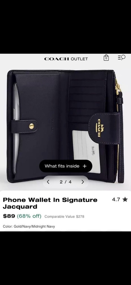 The Coach Phone wallet in Signature Jacquard is a stylish and functional accessory for women. Made with a combination of leather and cotton in a solid midnight navy color, this wallet features a wristlet strap for convenience. The iconic Coach logo adds a touch of luxury to the design, along with practical features such as credit card slots and a secure zipper closure. With its compact size of 7×4×1, this wallet is perfect for on-the-go use while maintaining a fashionable look.