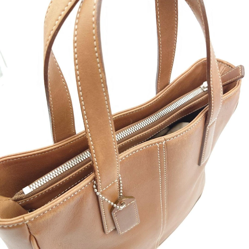 This Coach tote bag is absolutely stunning—the rich brown leather has a timeless, elegant look. Even with slight wear, it's in great condition and feels super sturdy. The size is perfect for daily use, fitting everything I need without being bulky. Shipping from Japan was surprisingly fast, and the seller was super responsive and polite. Definitely worth every penny for a high-quality, authentic Coach piece!