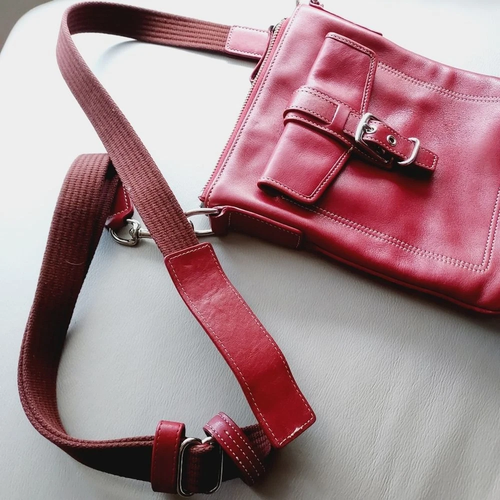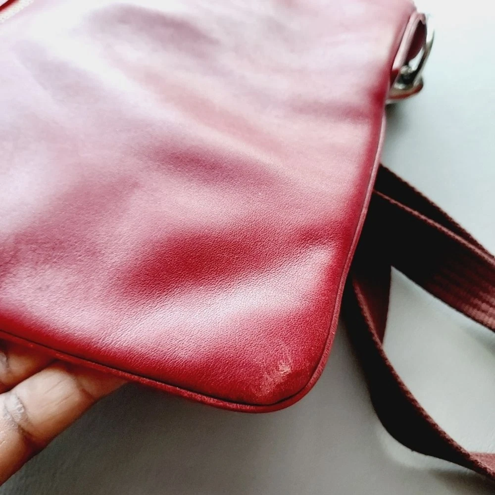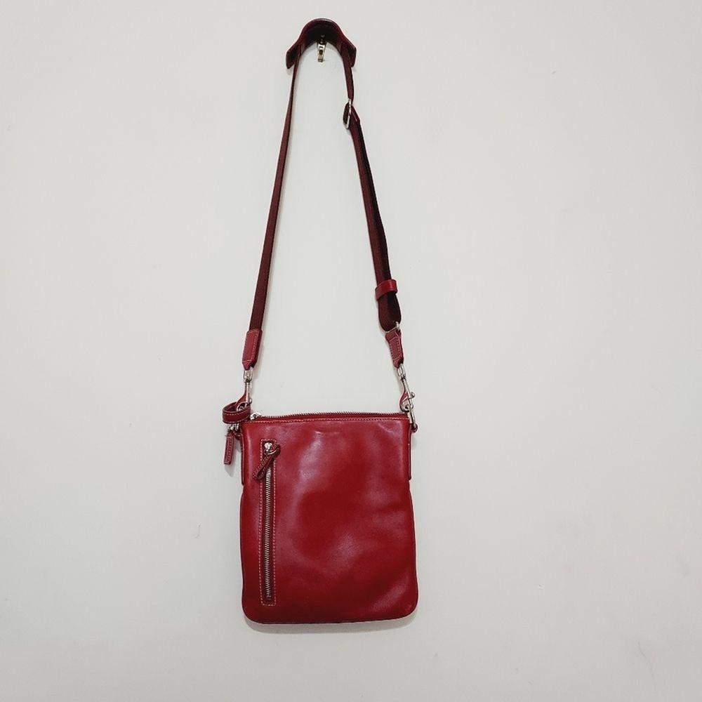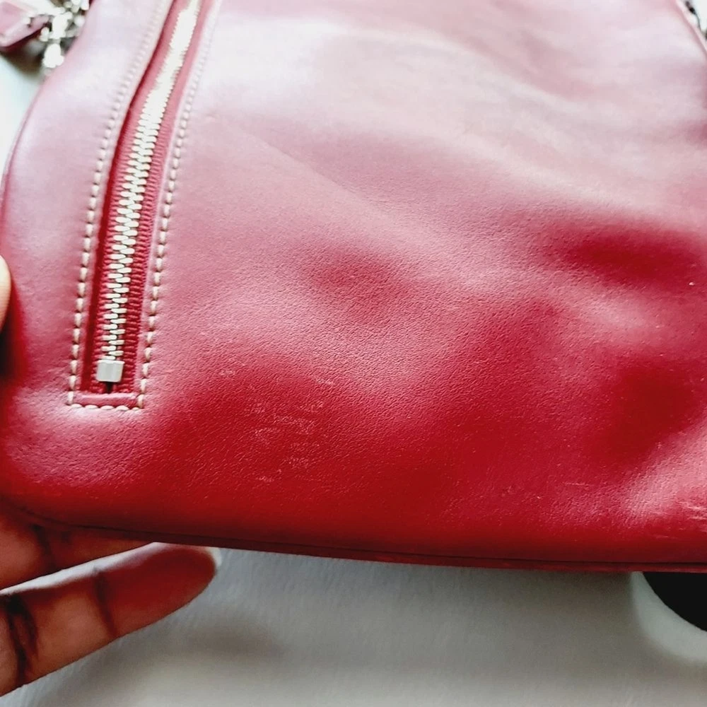 leather crossbody bag with adjustable strap silver hardware multi functions pockets zip closure minor scuffs, see pictures, please