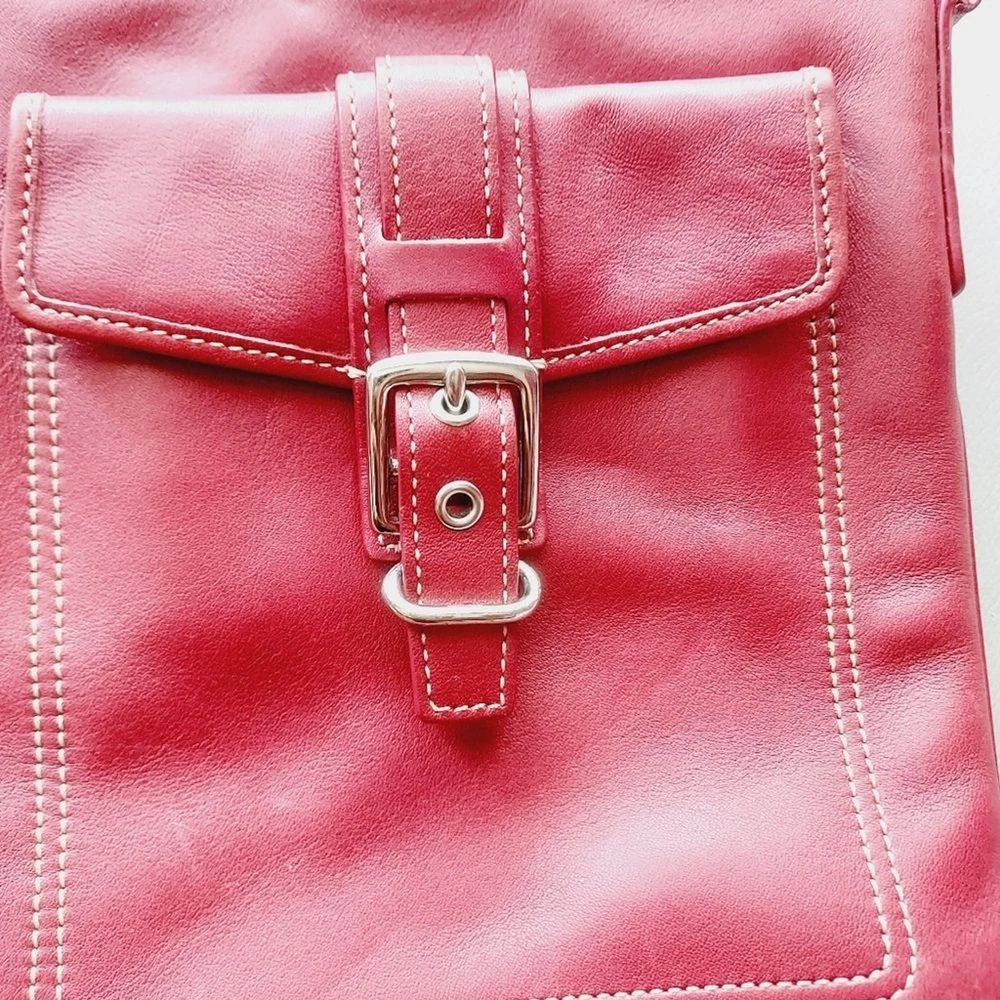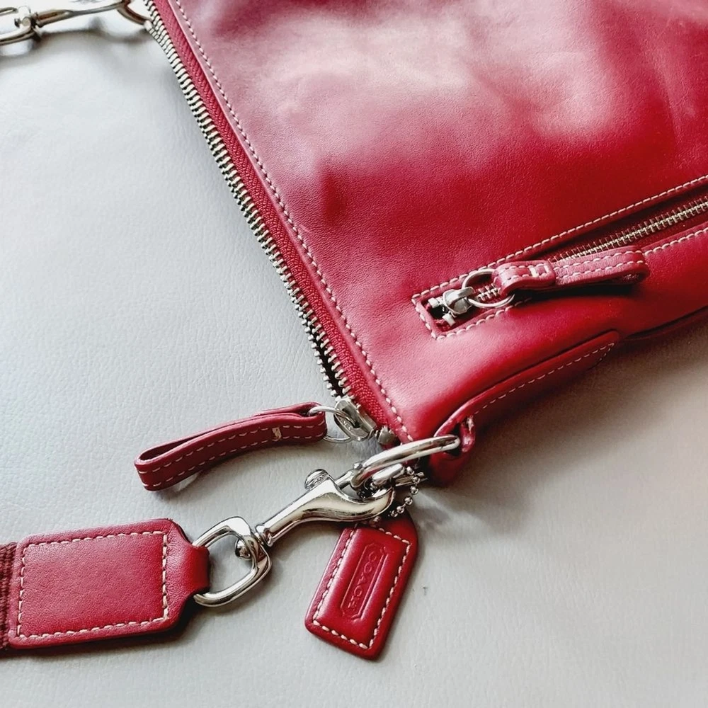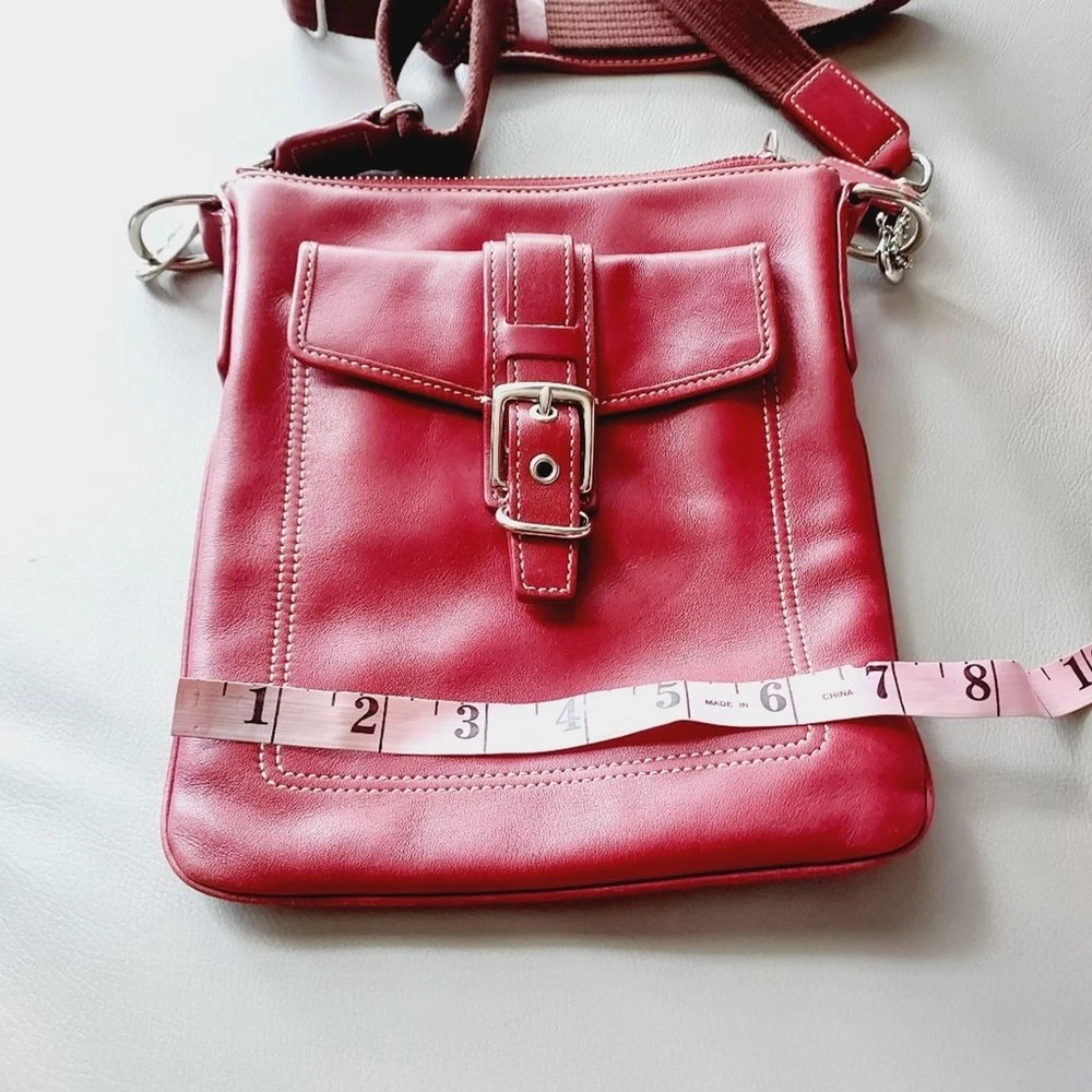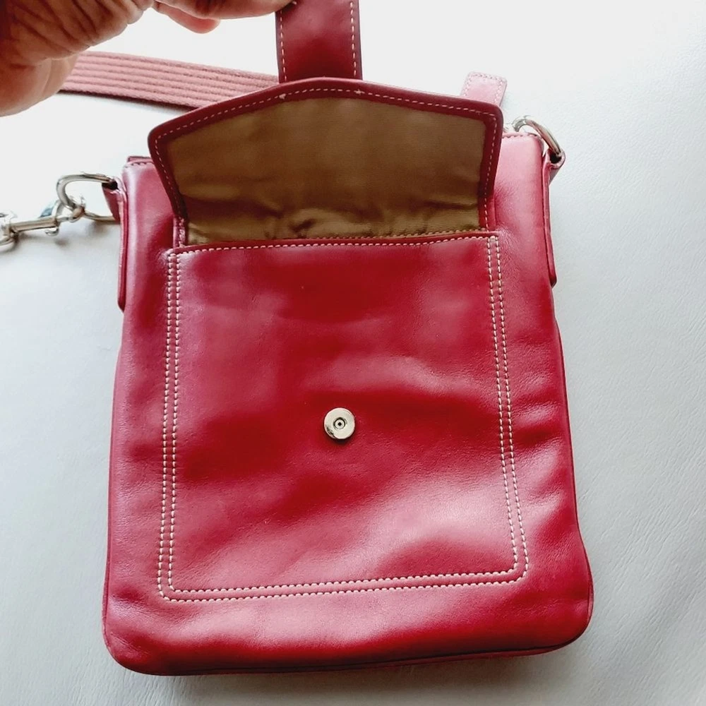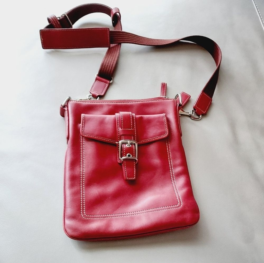 leather crossbody bag with adjustable strap silver hardware multi functions pockets zip closure minor scuffs, see pictures, please