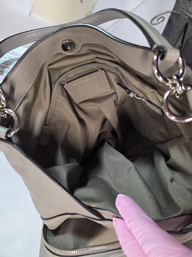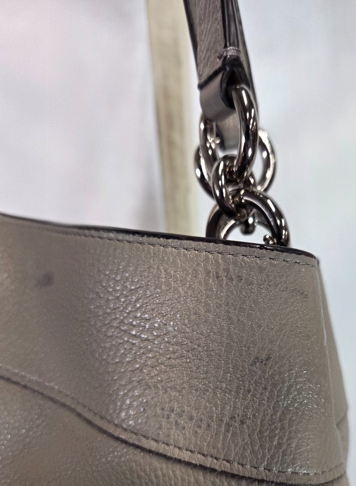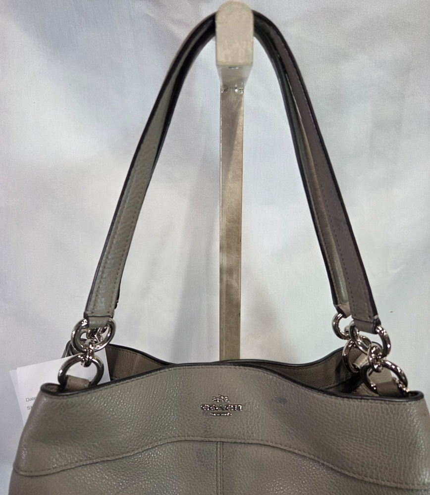Coach Lexy Gray Pebbled Grain Shoulder Bag Brand: Coach Overall Condition: Good condition, one mark on front of purse. See pictures for details. Material: Leather and polyester. Shipped with USPS Priority or Flat Rate, or if possible First Class Mail. The Coach Lexy Gray Pebbled Grain Shoulder Bag is a spacious, unstructured leather bag known for its practical, organized interior featuring three compartments (a center zip) and multiple slip/zip pockets, secured by a magnetic snap closure and accented with silver or gold-tone hardware and a Coach hangtag, offering a slouchy, comfortable fit with double handles and sometimes a detachable strap, ideal for everyday use with a stylish, tactile pebbled finish. Details for Shopper Width: 15 inches Height: 12 inches Base: 3.5 inches Handles: 9.5 inches Payment Policies We accept payment through PayPal, credit card, and debit card. Please note that the item may be relisted if payment is not received within the 10 day period. Shipping Policies Delivery estimates will be displayed at checkout. In-store pickup is also available if you would like to visit us in store. We ship to Continental United States only. Terms of Sale Each item we sell is unique. There are no exchanges for the same item available. All items are carefully inspected by My Sister’s Closet of Monroe County’s quality control team prior to shipping. Please carefully review item details. If you have questions, please message us regarding the item before purchasing. Note: Due to the different monitor and light effects, the actual color of the item shown might be slightly different from the color in pictures. Return Policy We strive to describe and measure our items accurately. If your order is not what you expected, we accept returns under the following conditions: The item was not as described as listed The wrong item was shipped. The item does not fit. If the wrong item was shipped, we will attempt to replace it with the item originally ordered. Please note - items not returned in the exact same condition, with tags attached, may be subject to a partial refund to account for loss of the item’s value. Please refer to eBay Return policy for more details. You are covered by the eBay Money Back Guarantee if you receive an item that is not described as listed. Return Requirements: The buyer must return the item within 30 days of receipt. Buyer is responsible for return shipping charges. The item(s) must be returned in the original condition, unworn, with tags attached. Thank you for shopping with us! A little bit more about us… My Sister’s Closet is a nonprofit serving women in poverty since 1998. Our mission is to help women move closer to economic self-sufficiency by providing essential career development tools. This includes job training, mentoring, advocacy services, and professional attire for job interviews to help them find employment. We have helped over 2800 women thus far. Most clients we serve have been dealing with homelessness, domestic violence, illness, divorce, job loss, economic recovery and/or lack basic education. Visit Our eBay Store