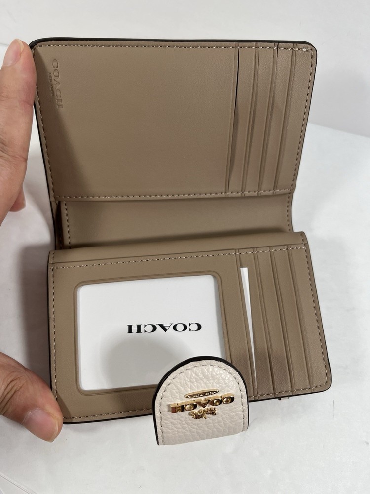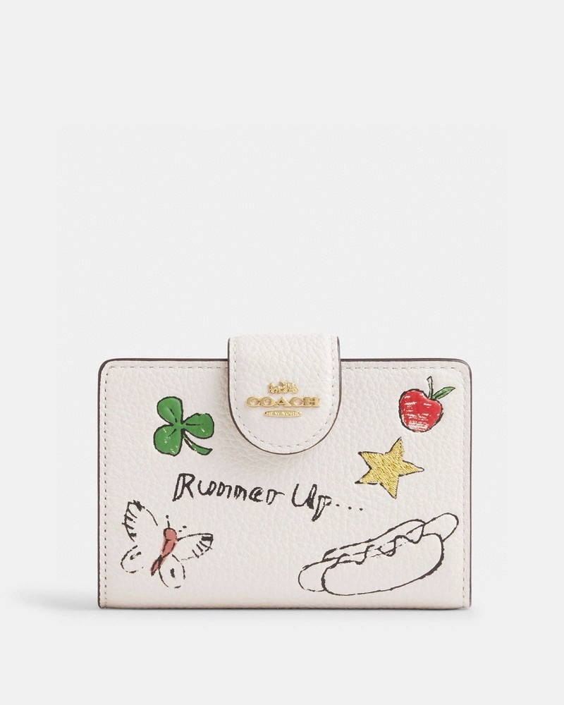 Limited edition pebbled leather/Gold/Chalk Multi Measurements Length: 5.0" Height: 3.5" Width: 0.5" Materials Refined pebble leather Features Seven credit card slots Snap closure Bill compartment Additional Details ID window